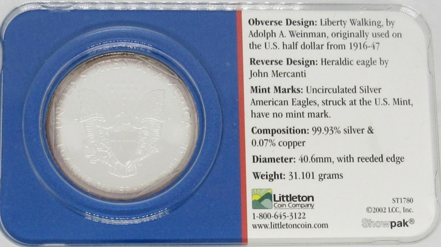 AMERICAN SILVER EAGLE 1ozt .999 PURE SILVER
