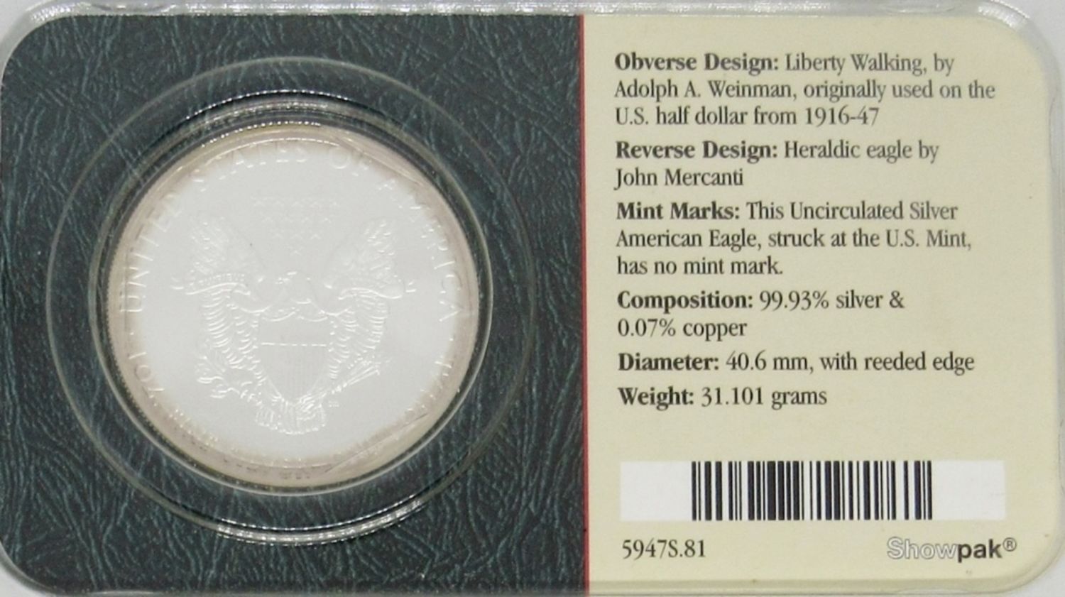 AMERICAN SILVER EAGLE 1ozt .999 PURE SILVER