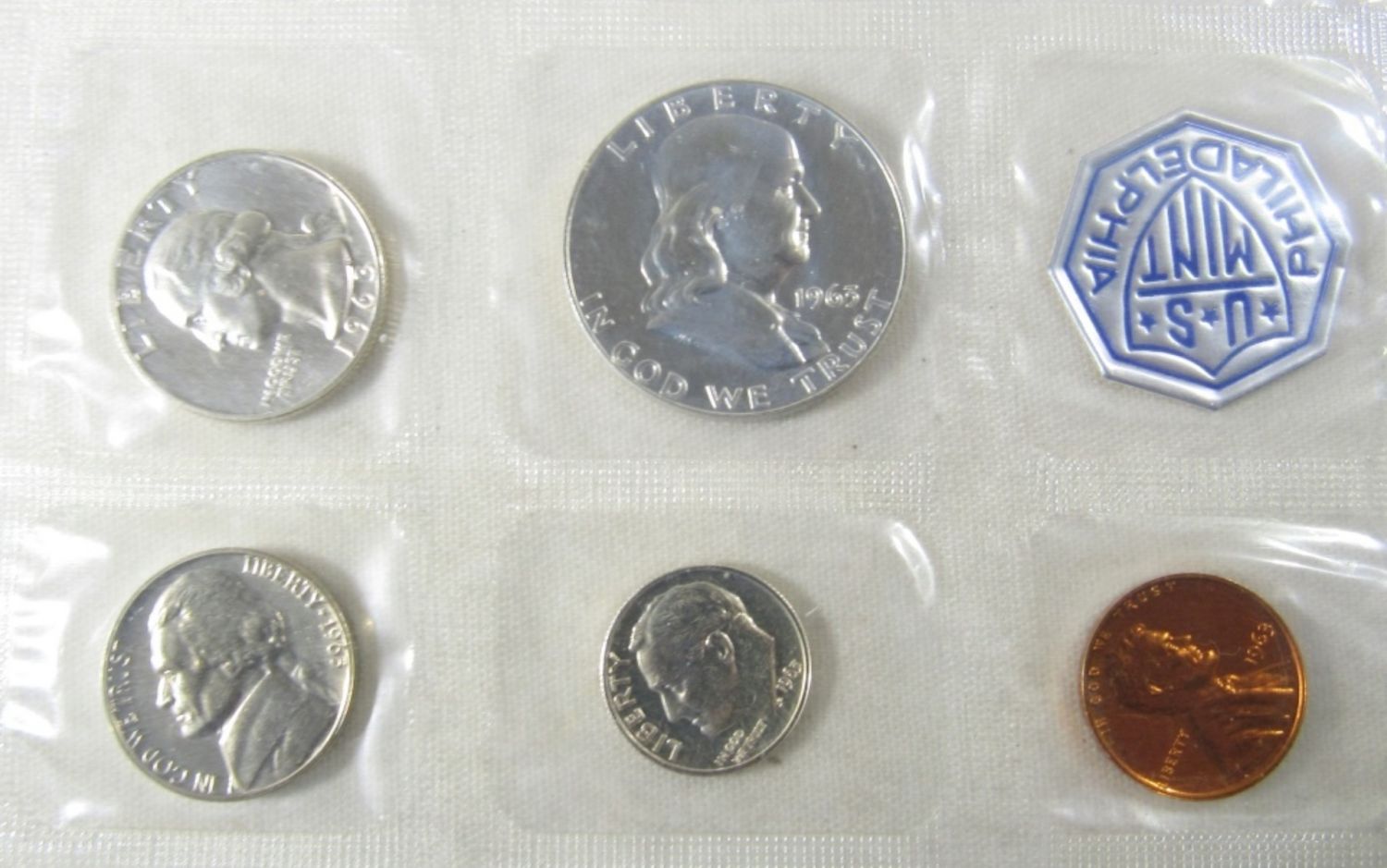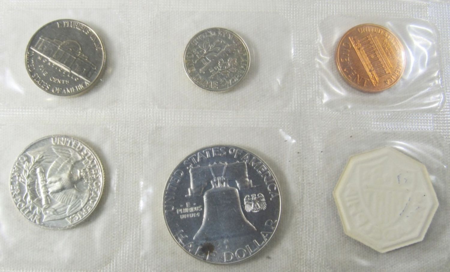 2-1961 MINT SETS IN ORIG ENVELOPE, 1961 & 64 PROOF SETS IN DIFFERENT ENVELOPE AND 1963 PROOF SET NO ENVELOPE