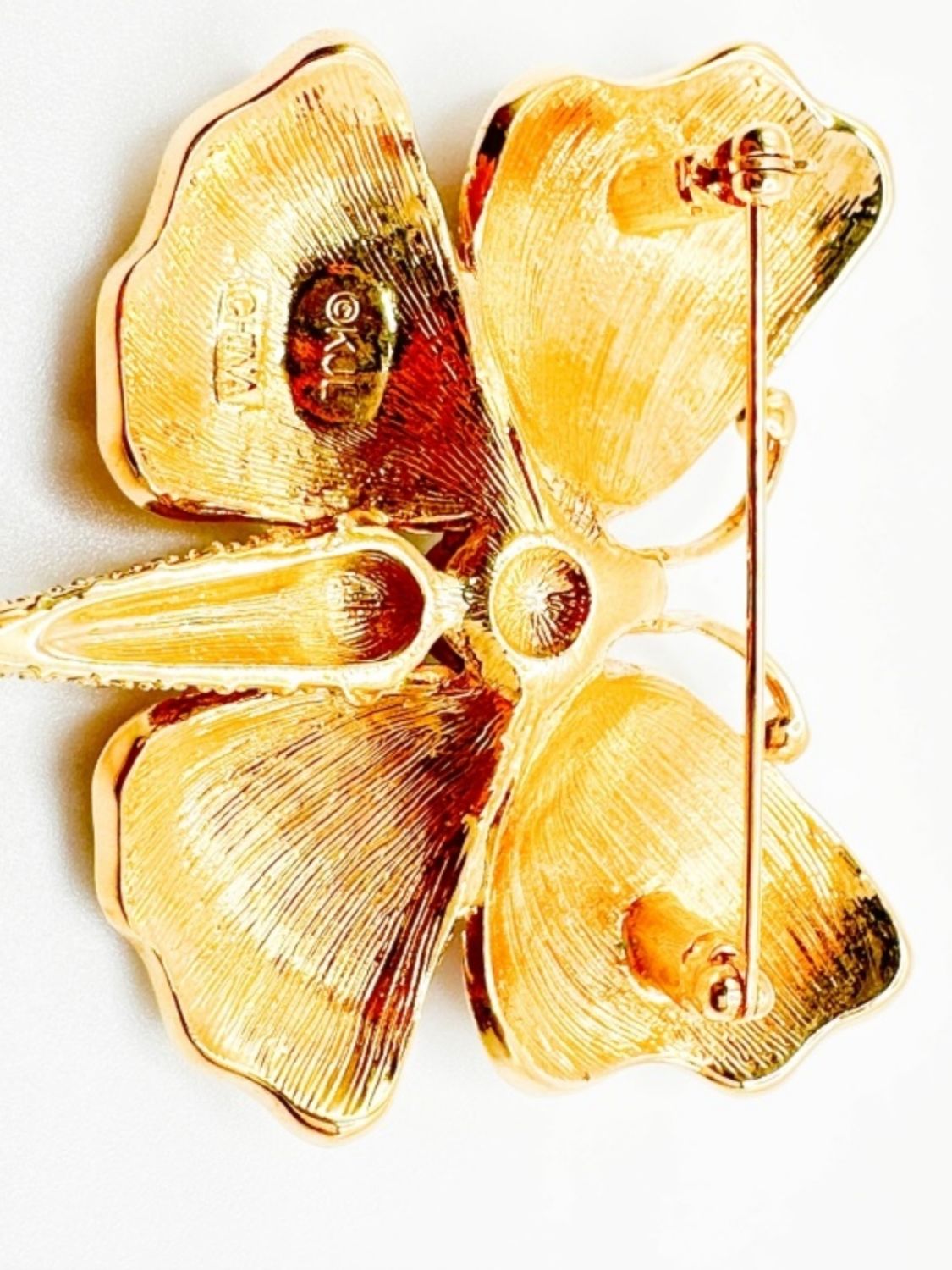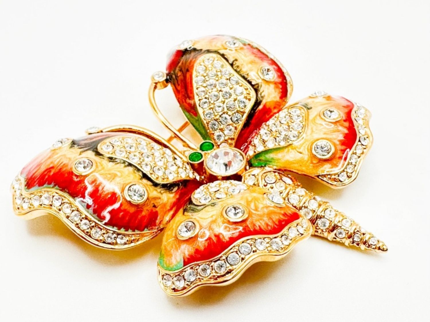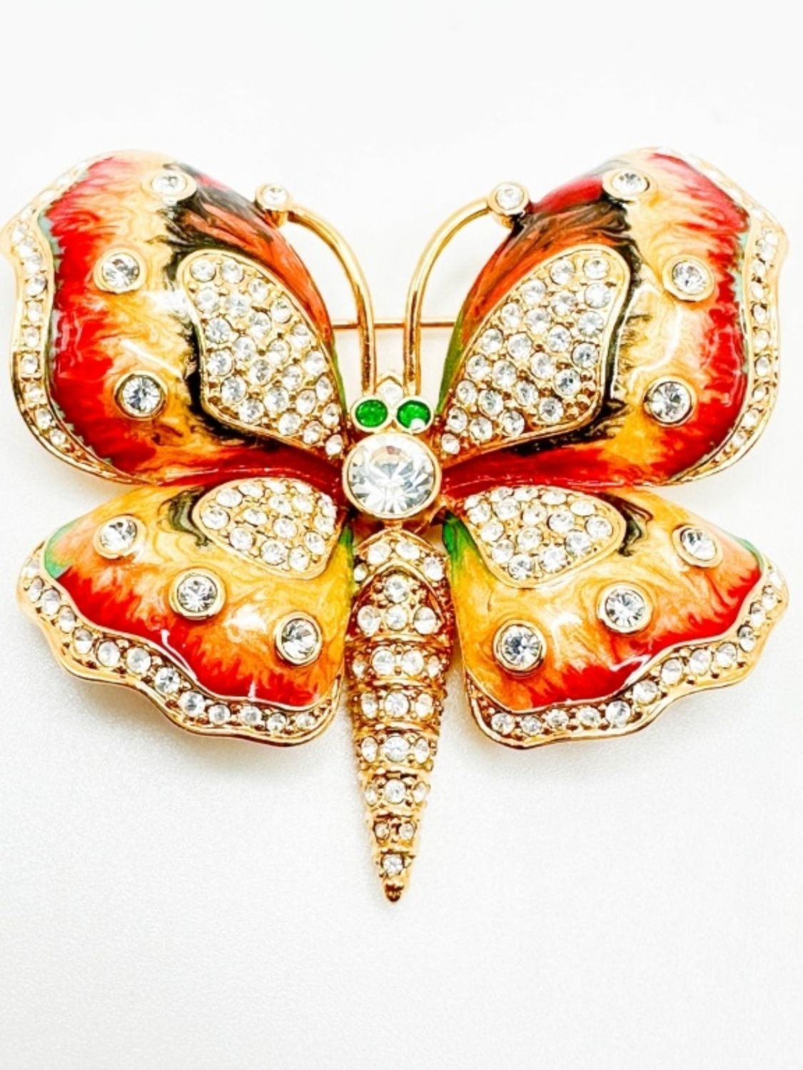STUNNING VINTAGE SIGNED KJL KENNETH JAY LANE COLOR BUTTERFLY WITH GREEN EYES AND CLEAR STONES