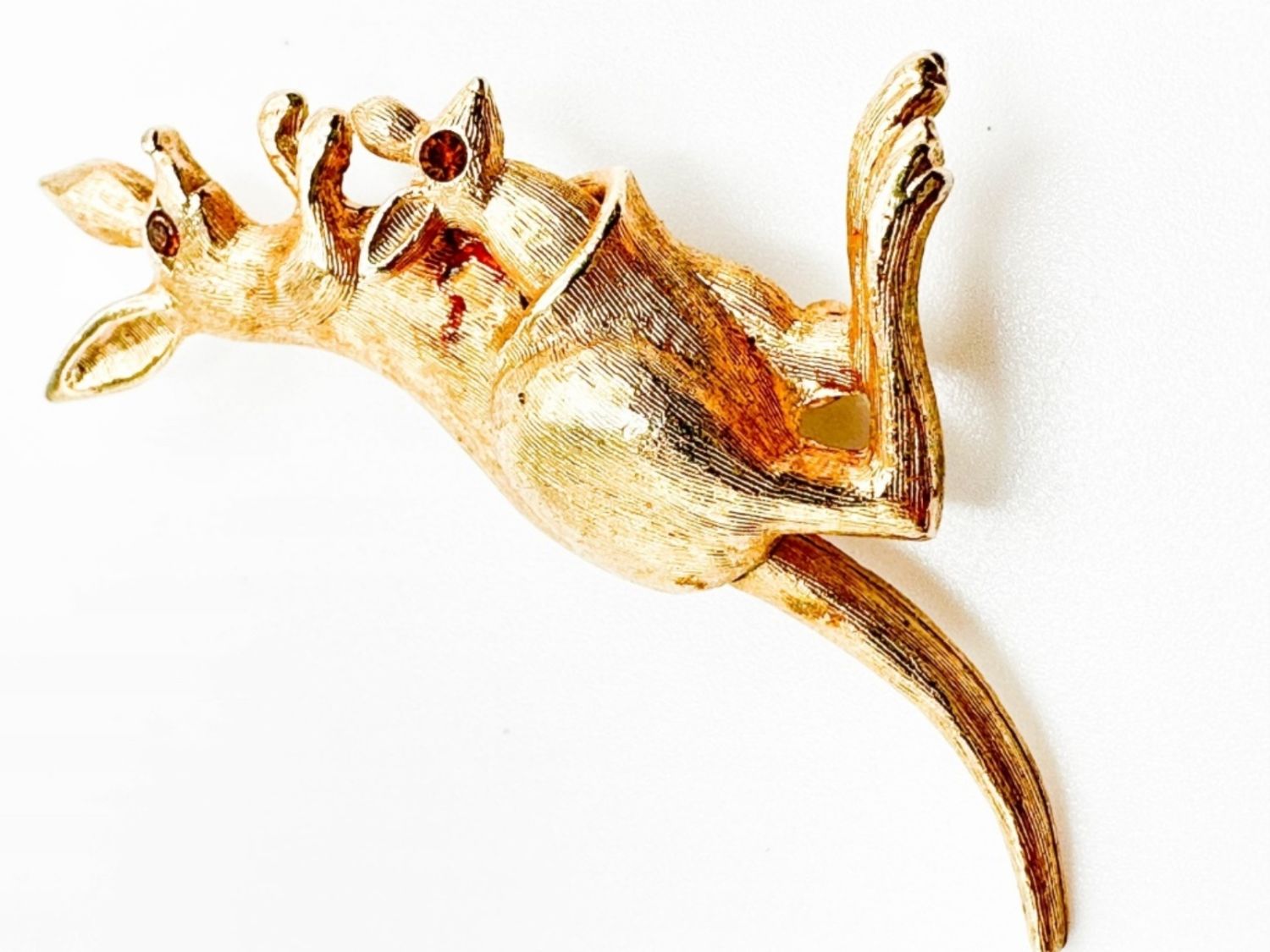 AVON KANGAROO BROOCH WITH STONE EYES, MOVE ITS TAIL AND THE BABY KANGAROO MOVES OUT OF POUCH