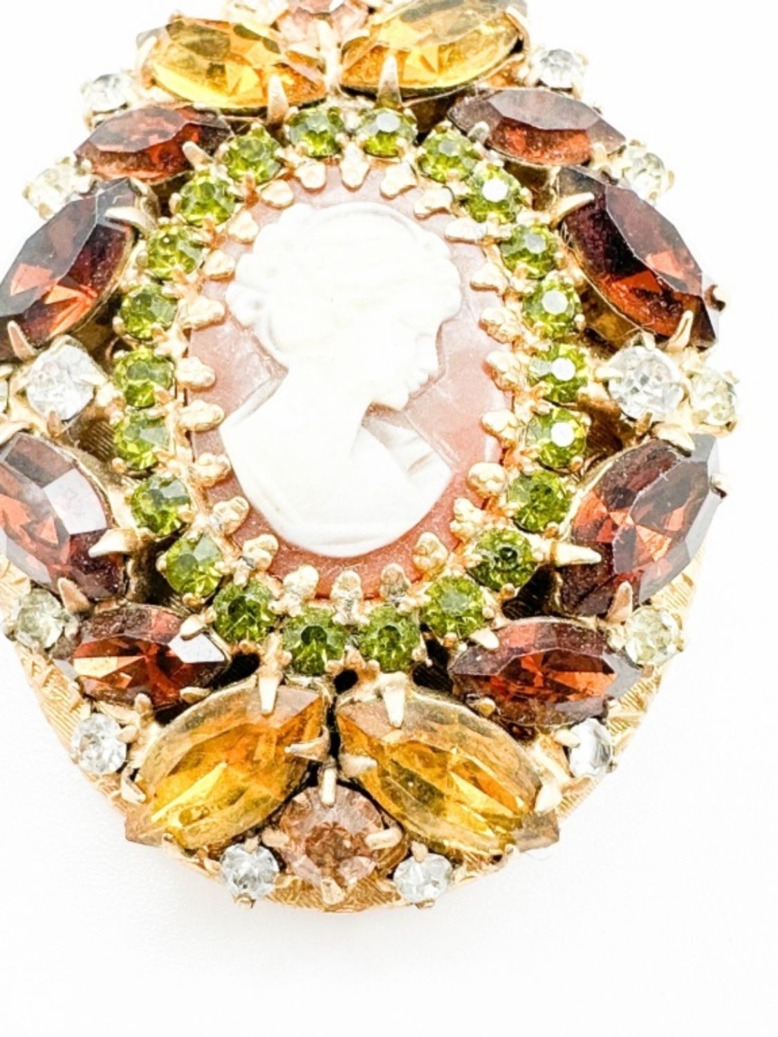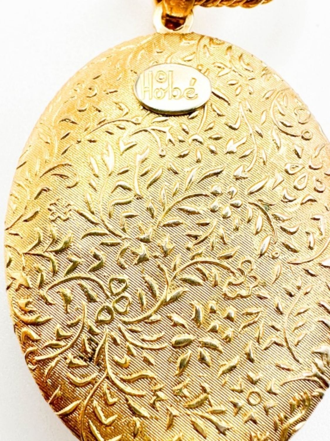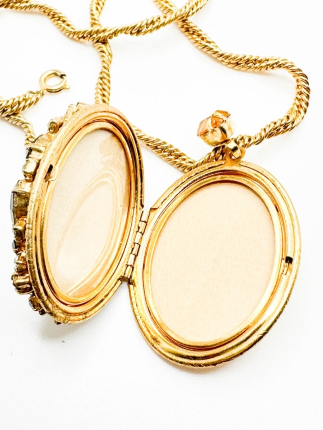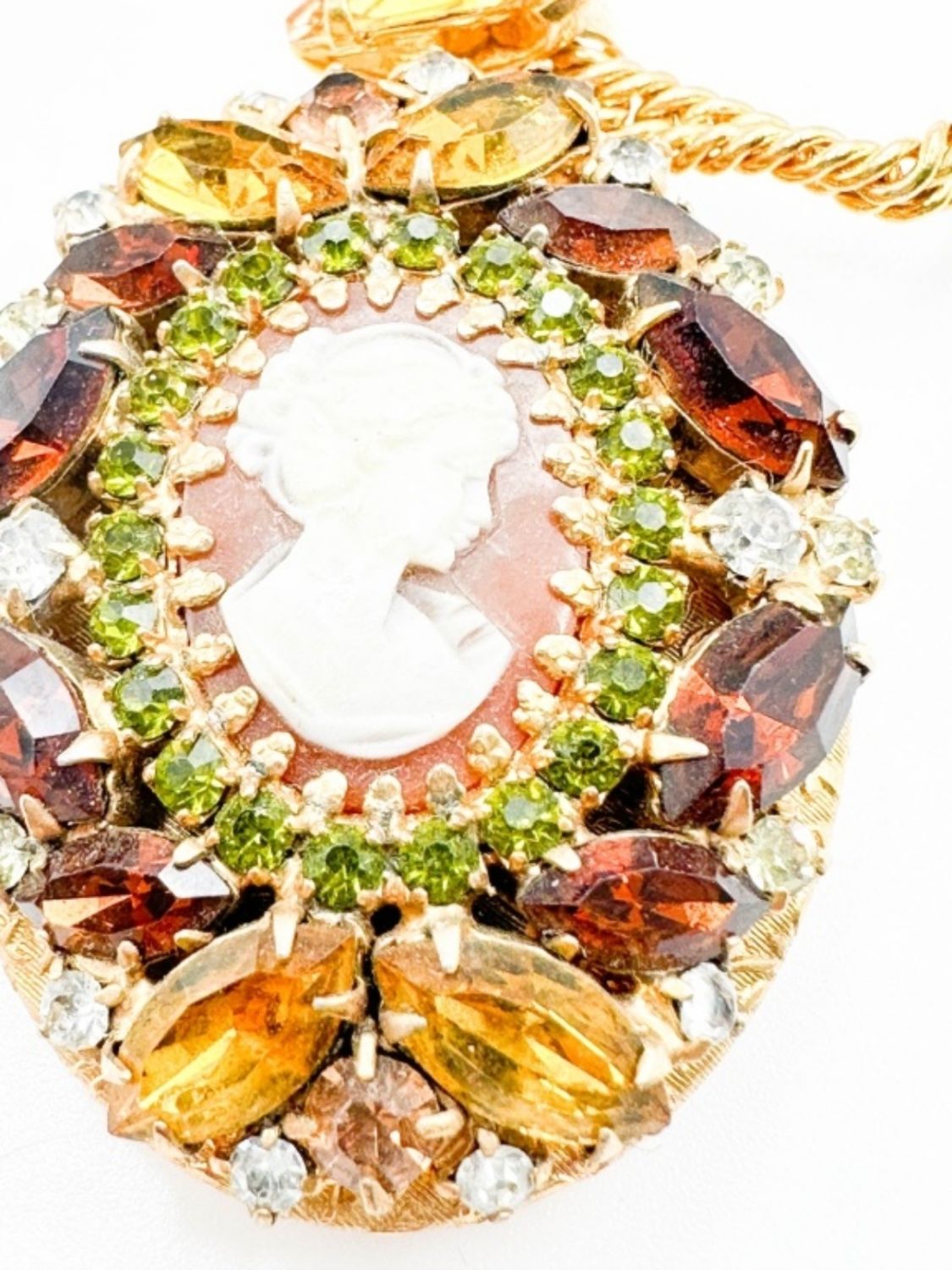 HOBE VINTAGE LOCKET NECKLACE WITH COLOR STONES AND CAMEO CENTER , AWESOME !!!!
