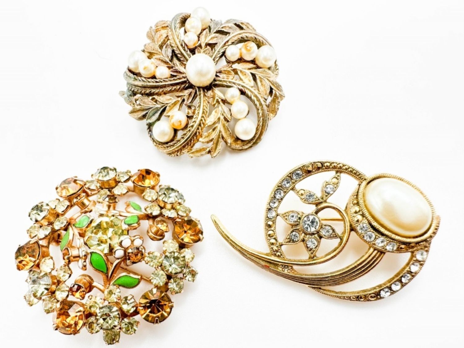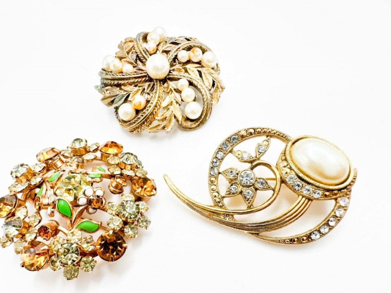 STUNNING COLOR BROOCH AND STONE BROOCH AND CIRCLE BROOCH