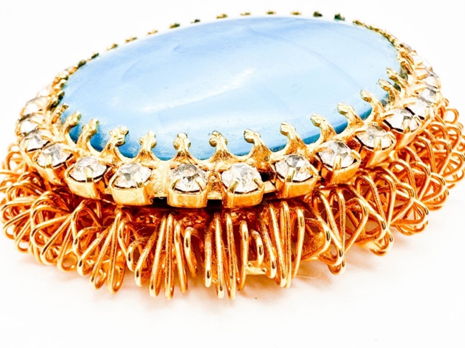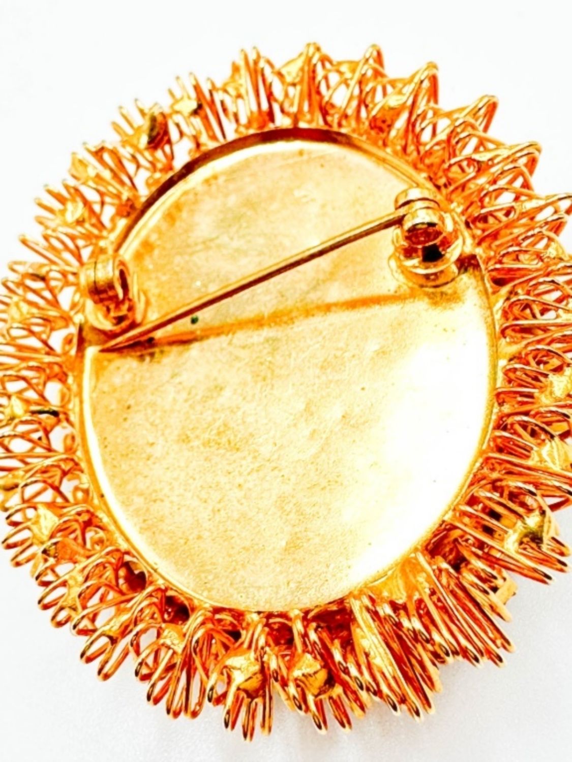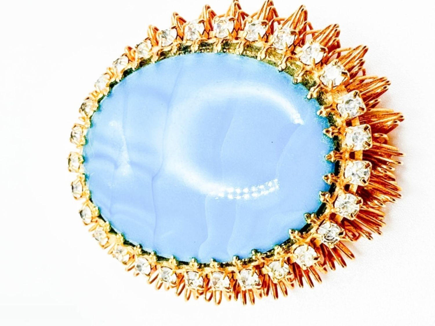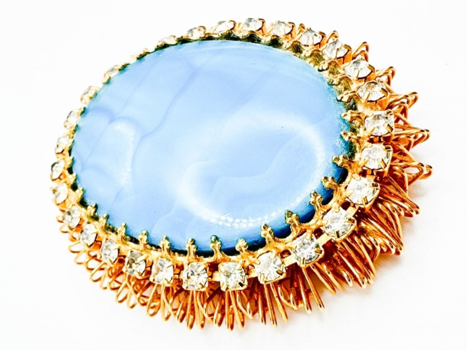 LARGE FANCY CAMEO STONE BROOCH WITH SMALL CLEAR SURROUND STONES