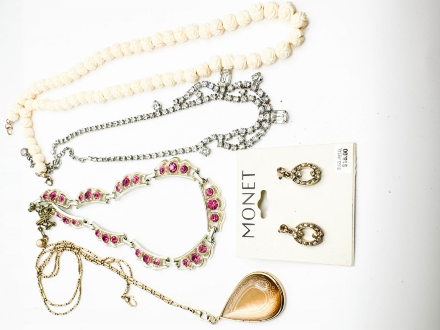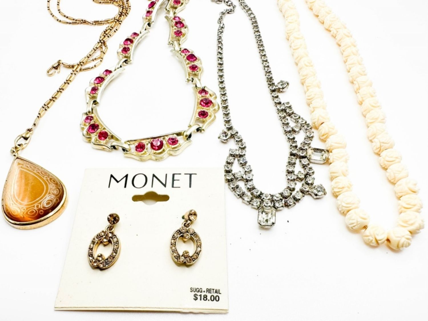 MONET EARRINGS SET AND CARVED NECKLACE AND MORE