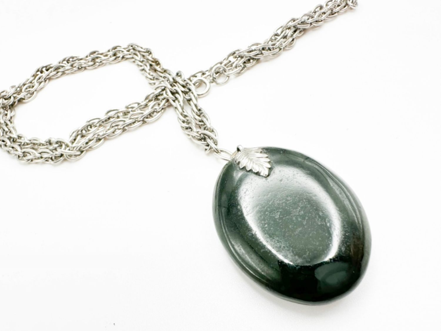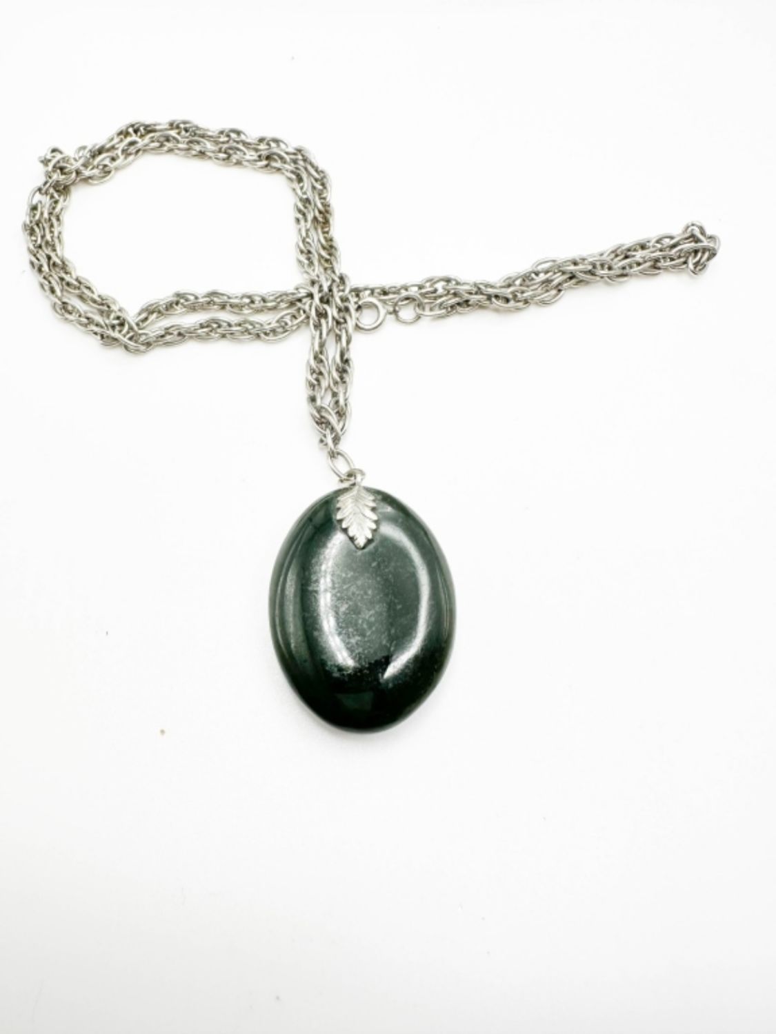 JADE? DARK GREEN STONE PENDANT NECKLACE