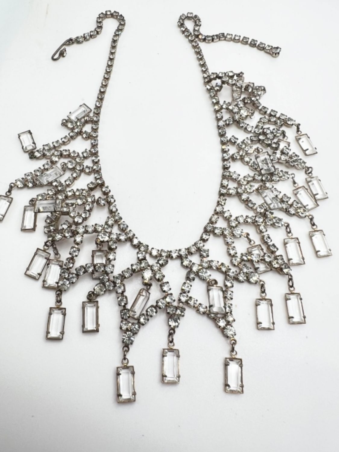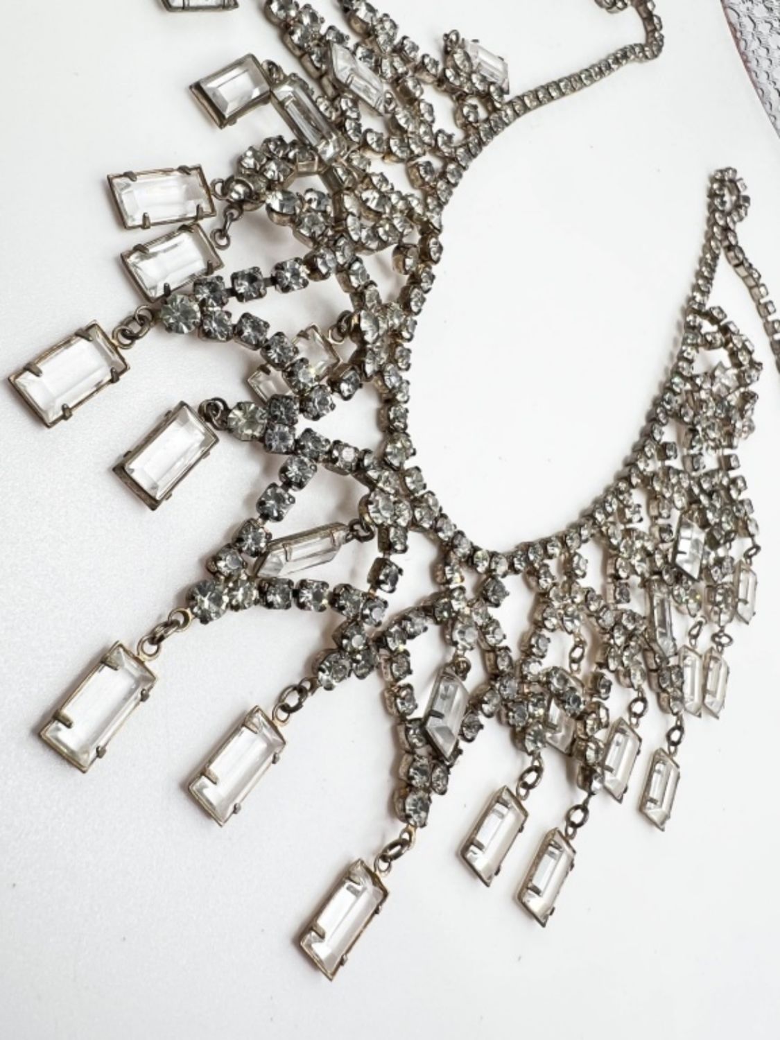 RHINESTONE NECKLACE WITH DANGLE DROP STONES