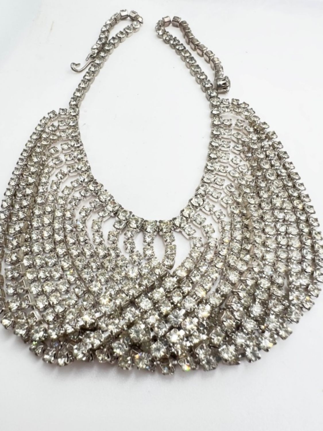 RHINESTONE NECKLACE WITH BIB DROP STYLE AND MULTIPLE STONES