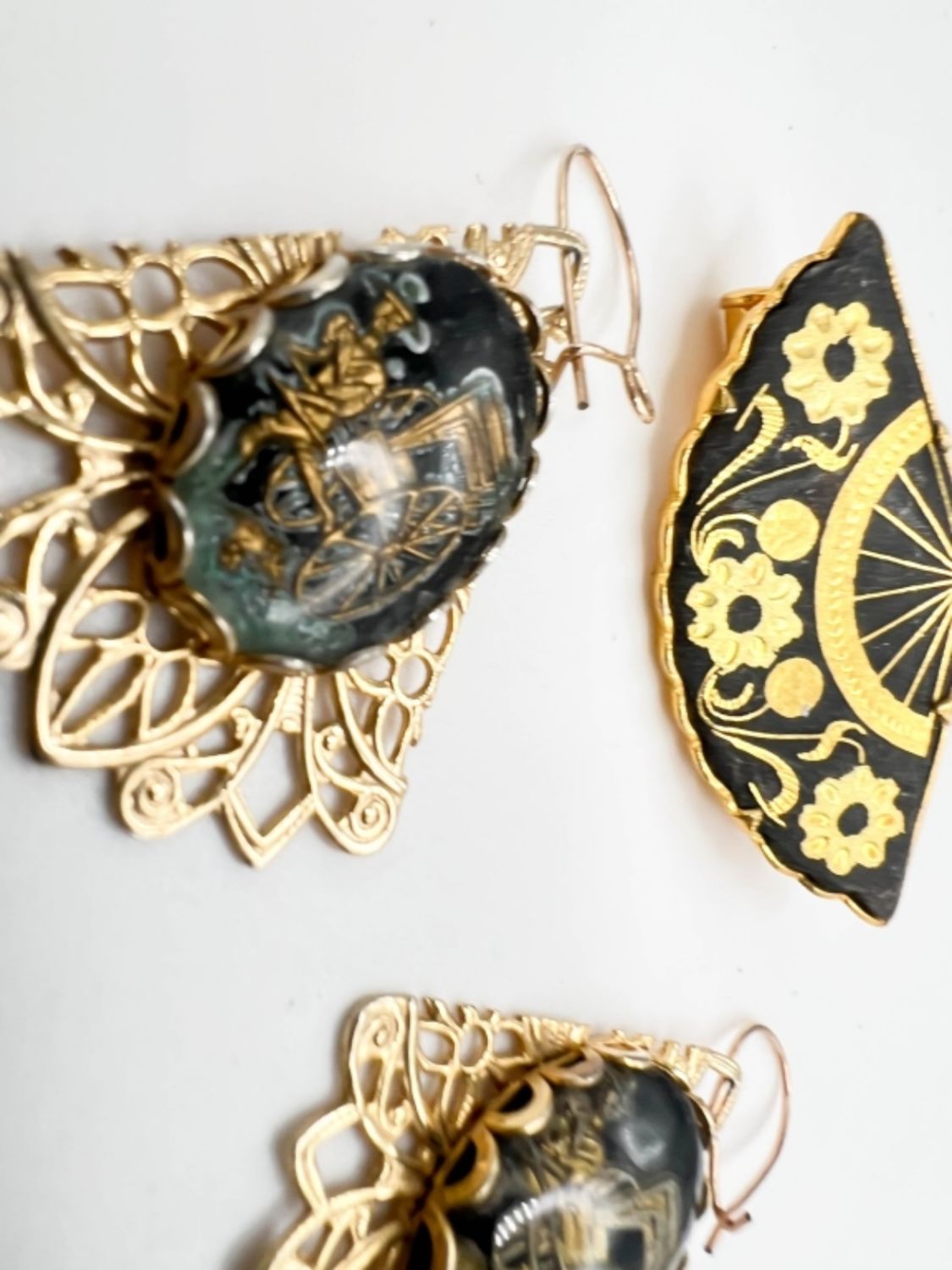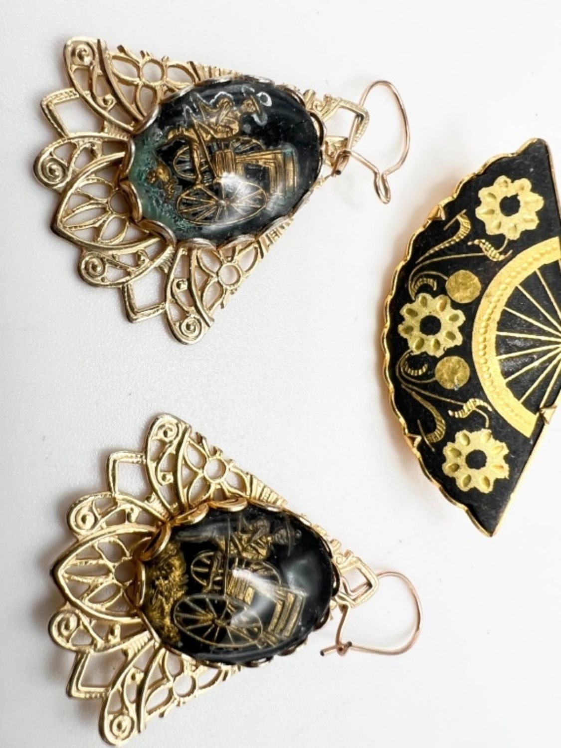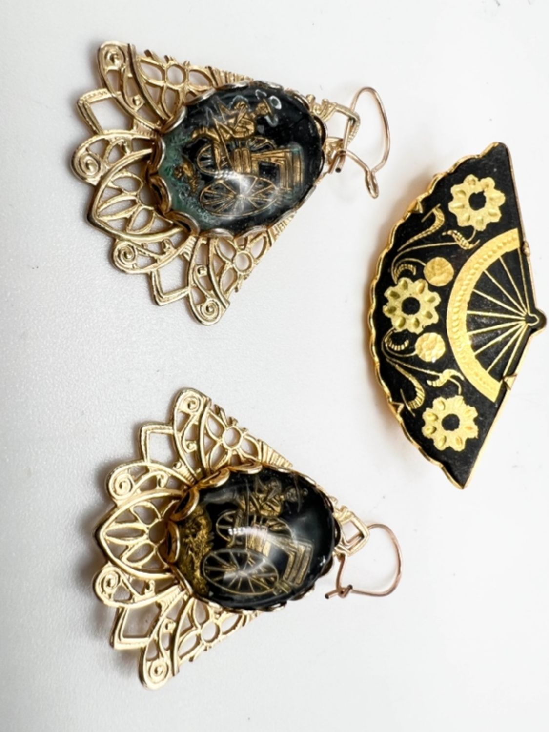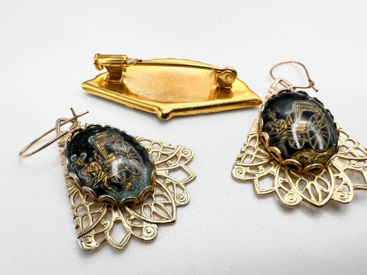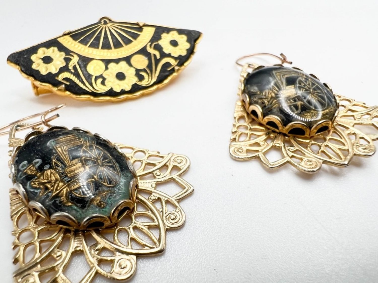 DAMASCENE BROOCH AND EARRINGS SET
