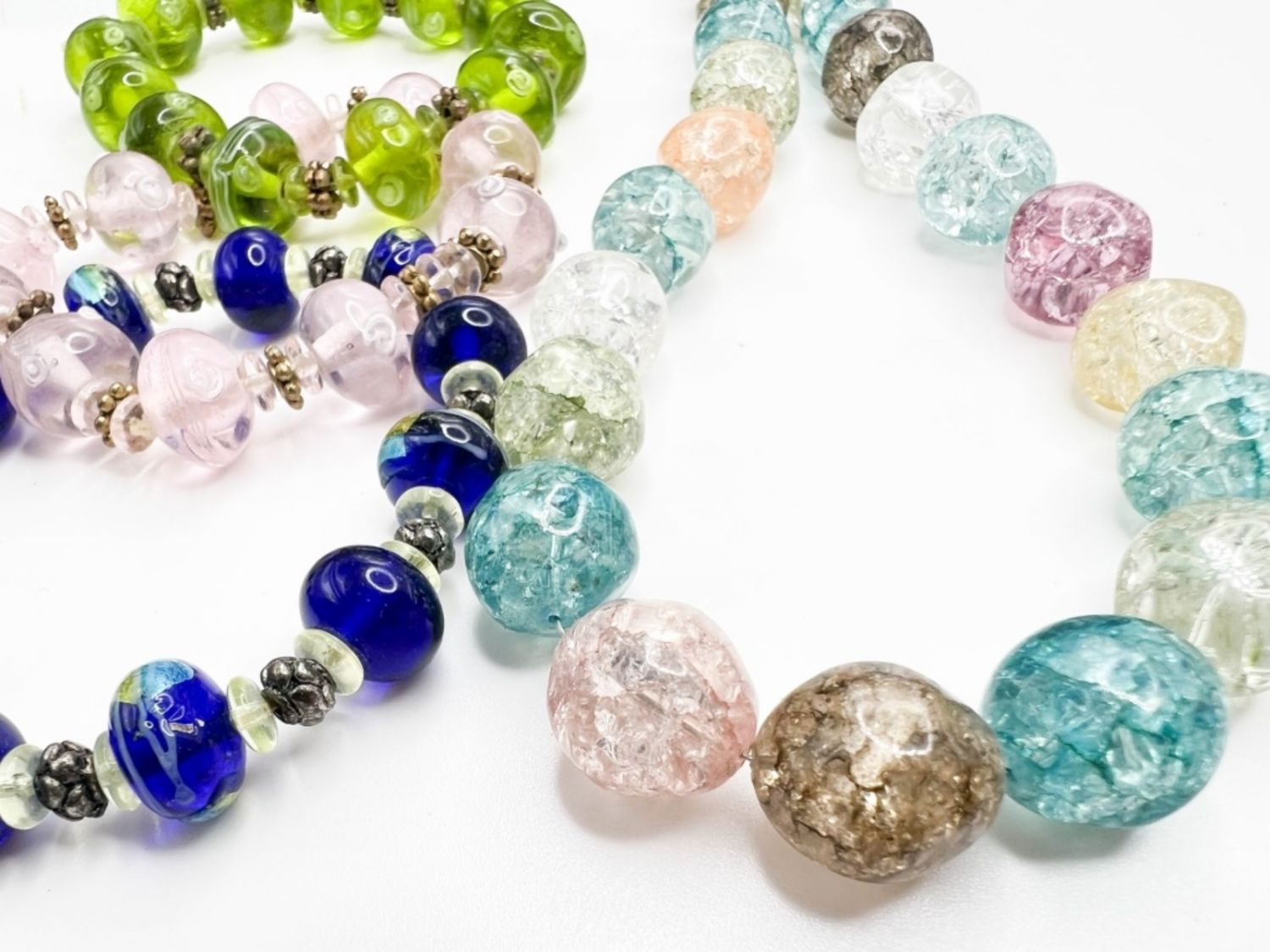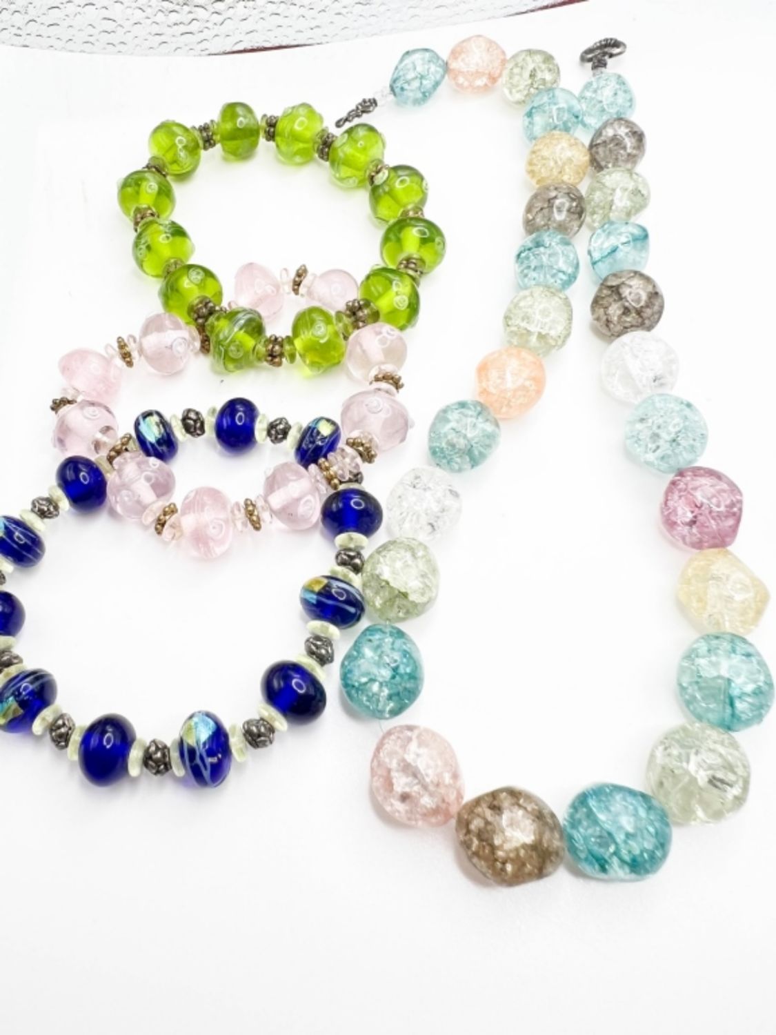 GLASS COLOR BRACELETS , HEAVY LARGE BEAD GLASS NECKLACE