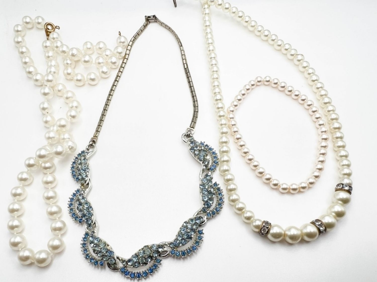 3 VINTAGE NECKLACES ONE WITH RHINESTONES IN SKY BLUE
