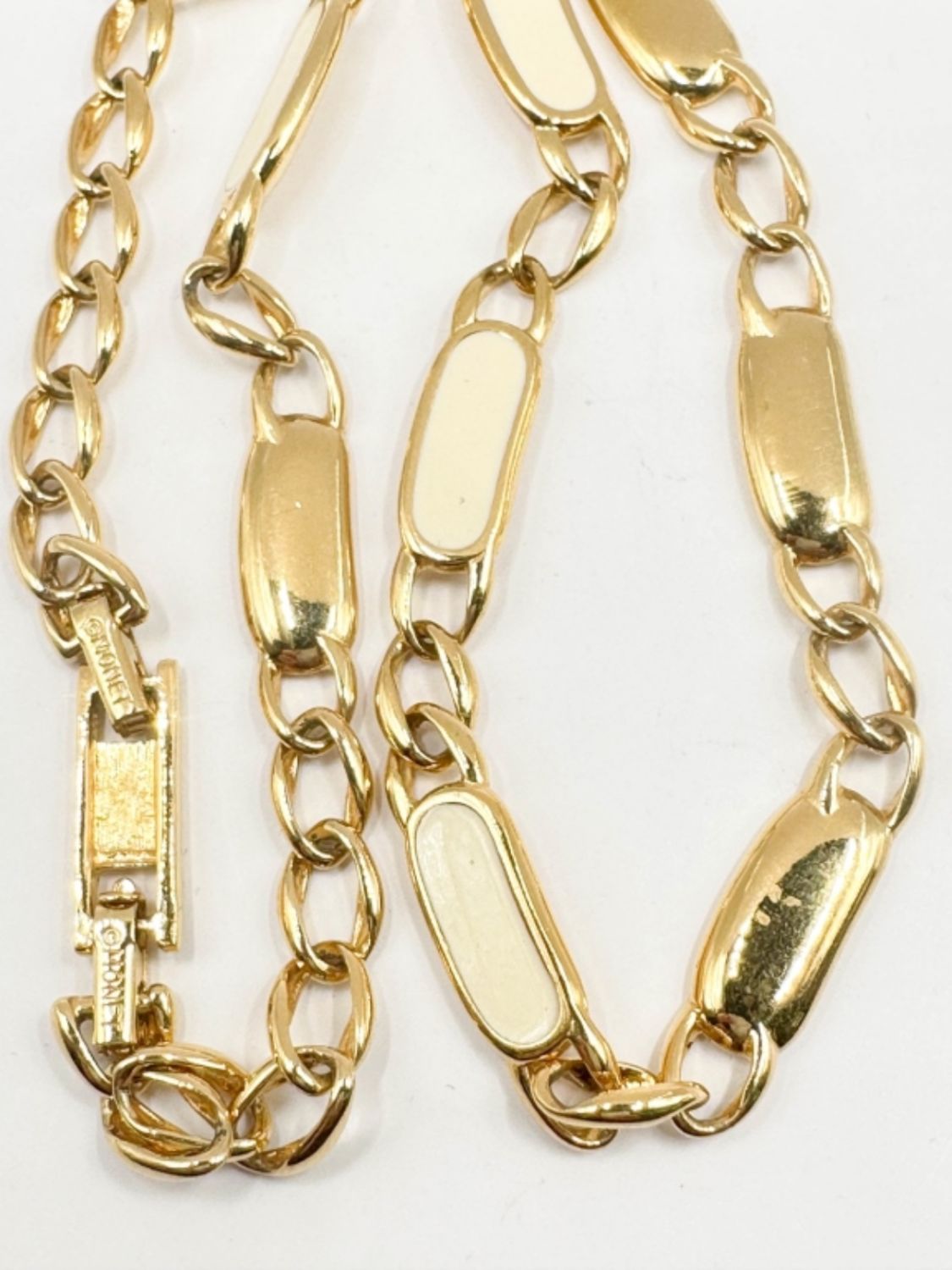 MONET VINTAGE ENAMEL BRACELET IN CREAM COLOR AND GOLD TONE