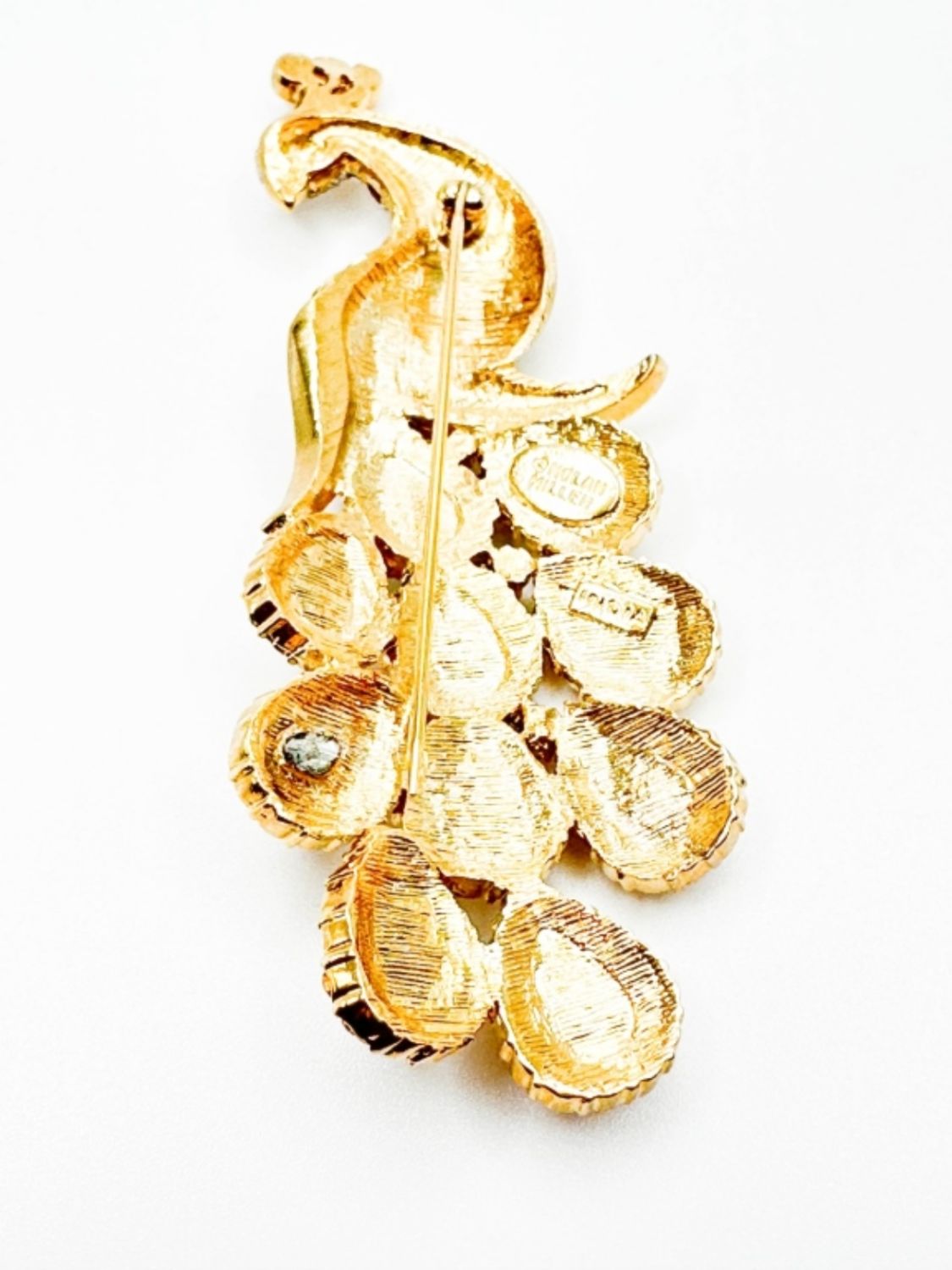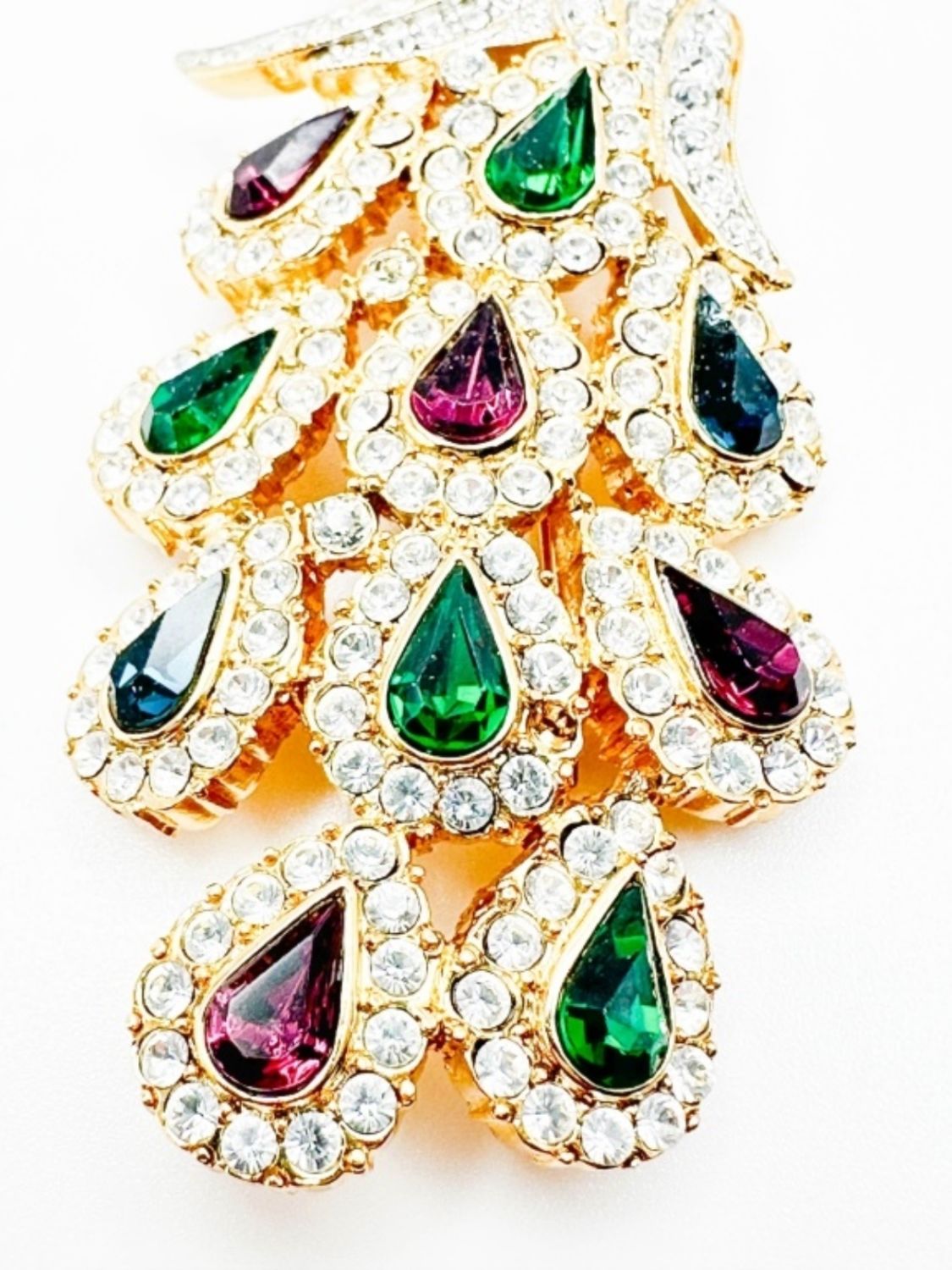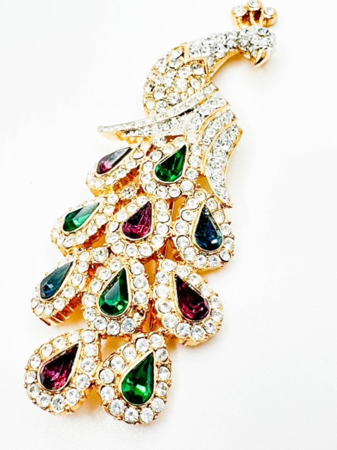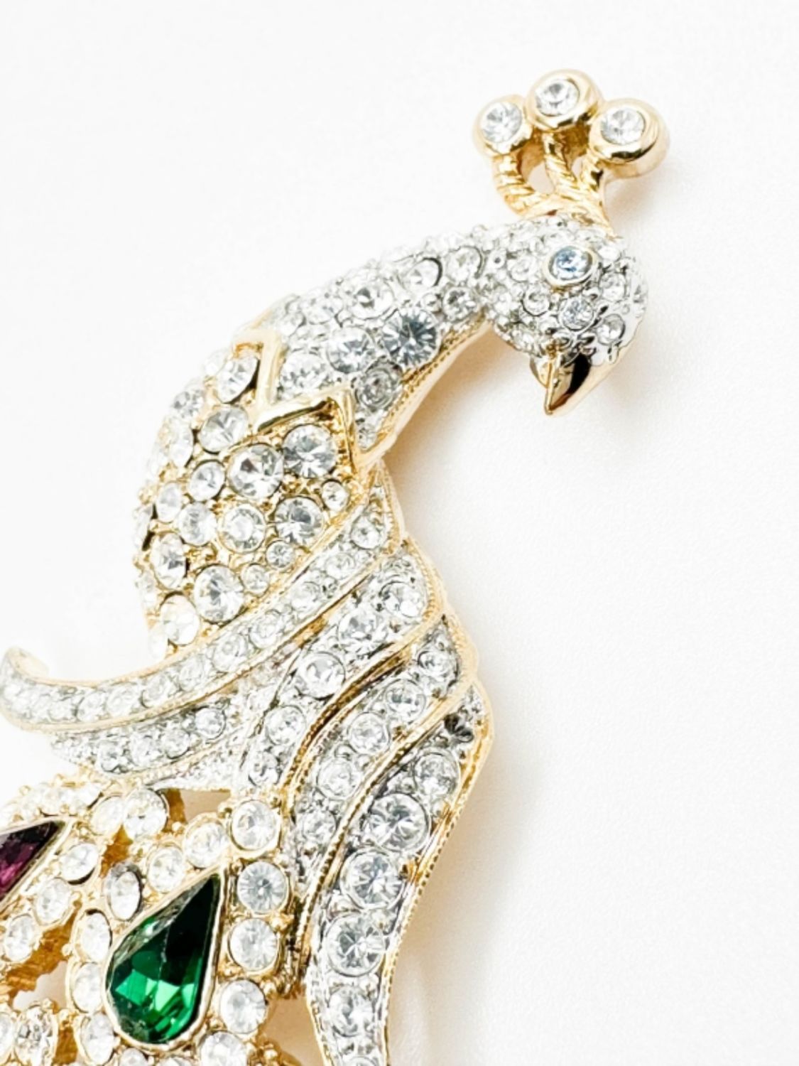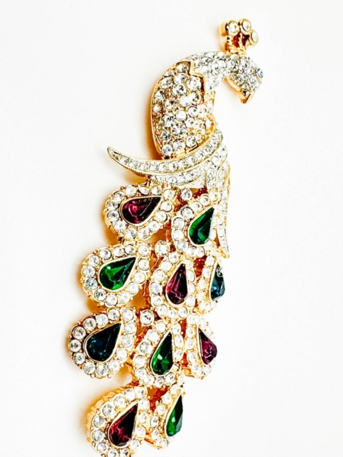 NOLAN MILLER VINTAGE COLOR AND CLEAR STONE PEACOCK BROOCH , AMAAAZING
