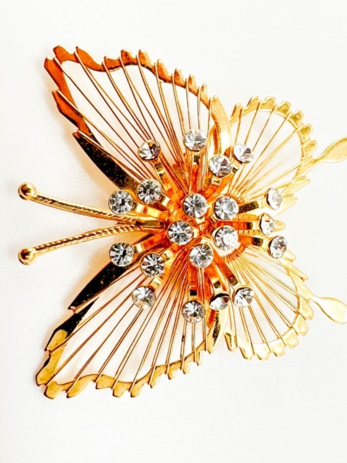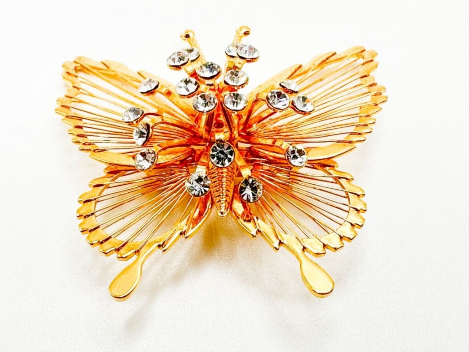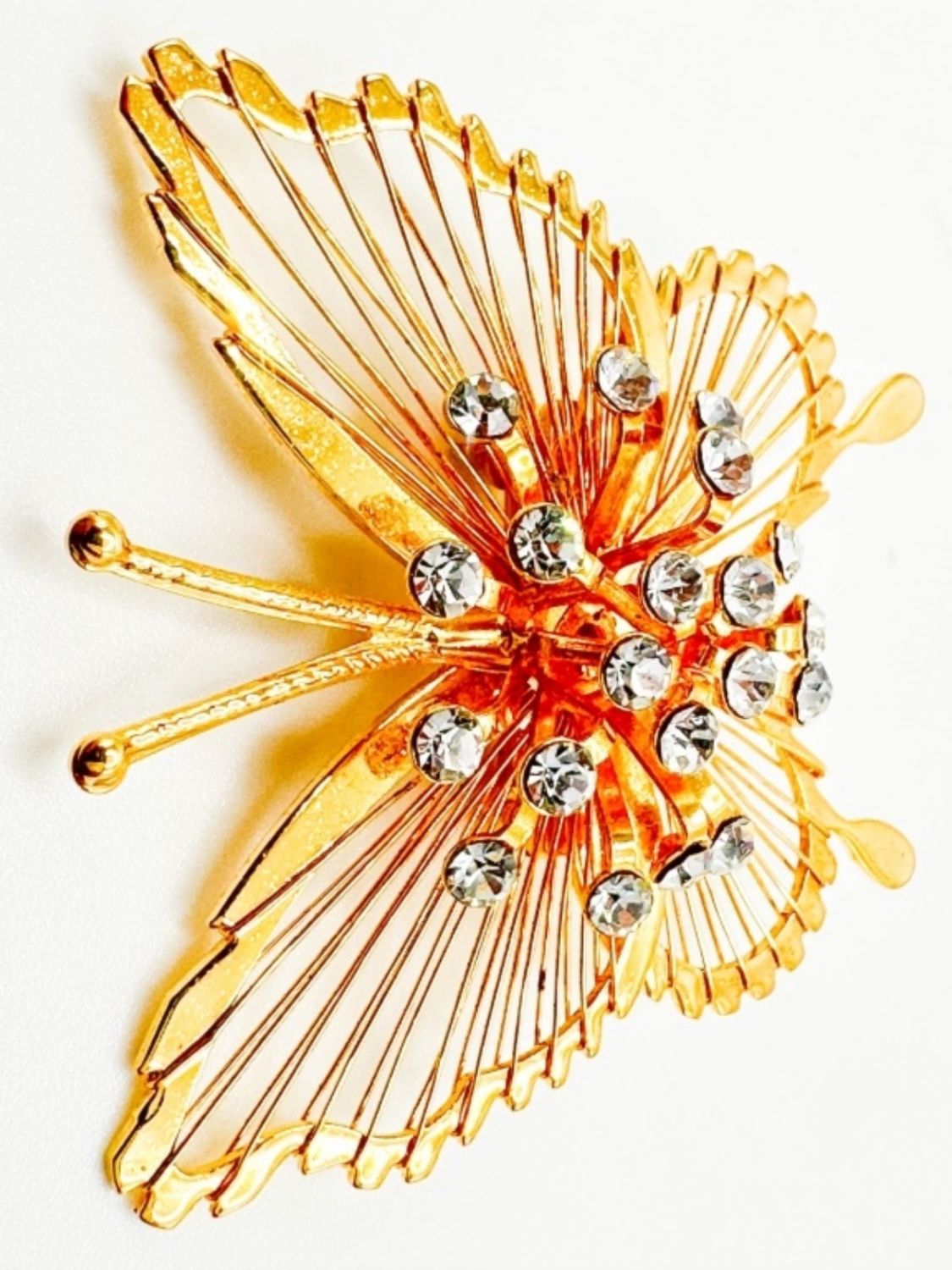 MONET SIGNED VINTAGE BUTTERFLY BROOCH W CLEAR STONES , AMAZING