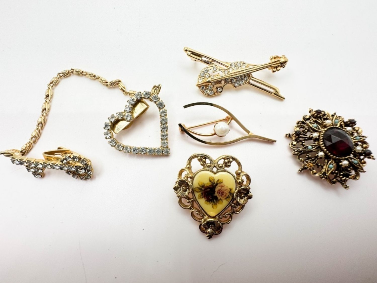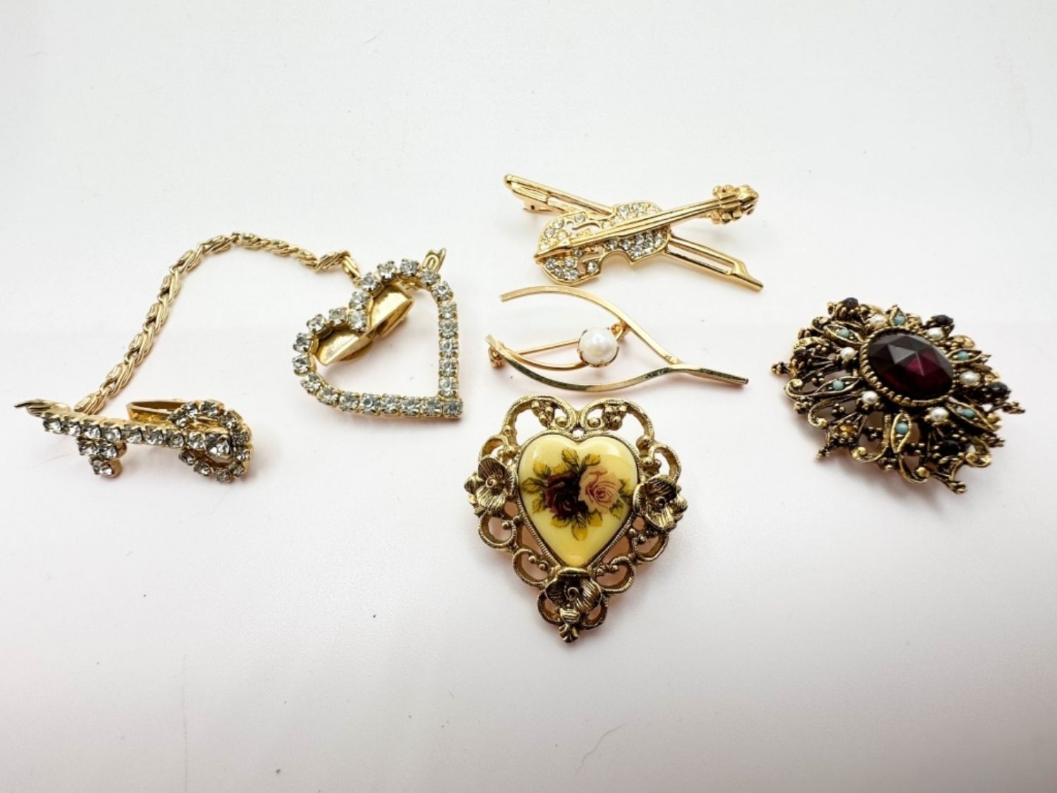 BROOCH ASSORTMENT STONES, HEARTS, MUSIC CAMEO