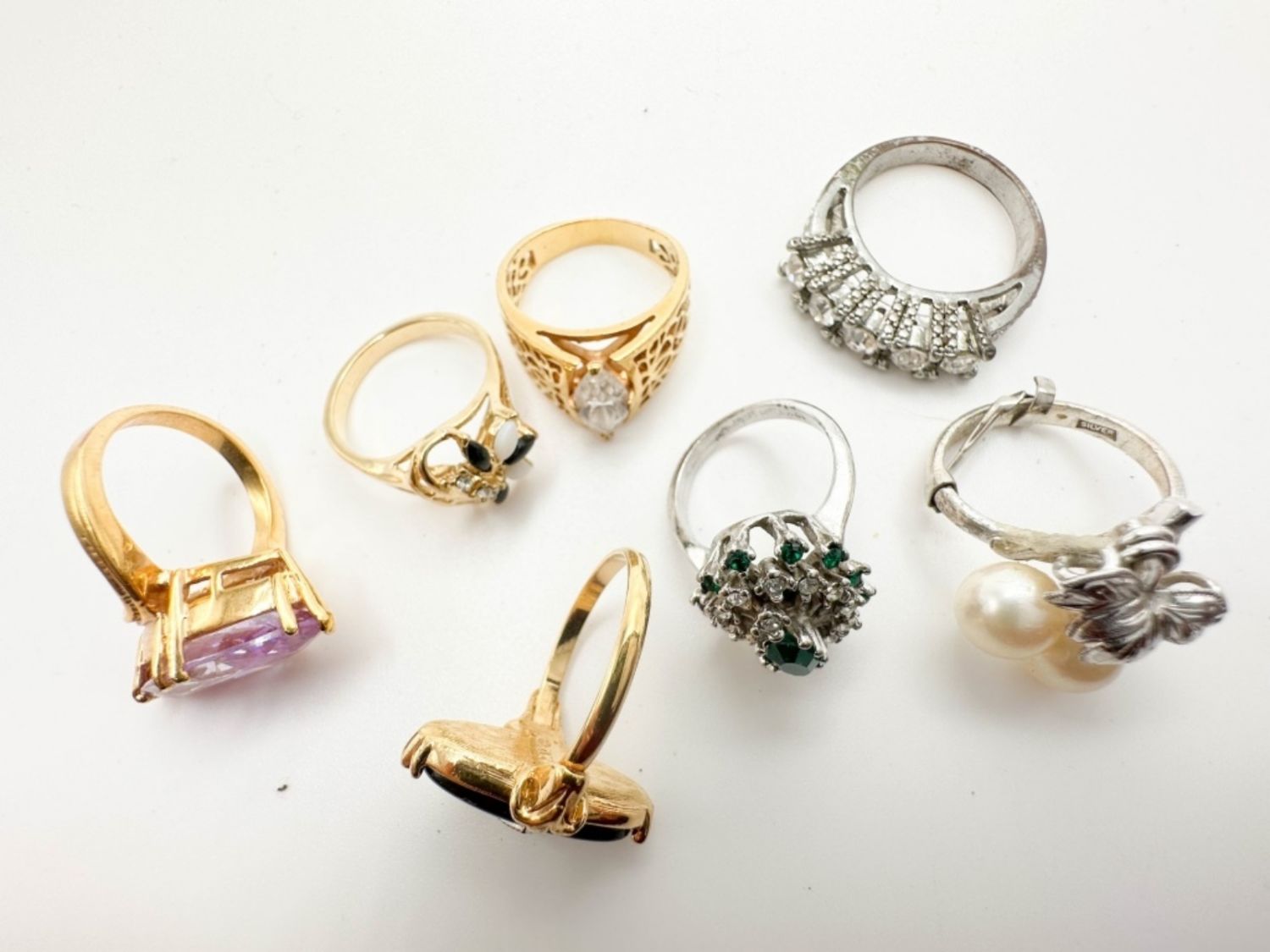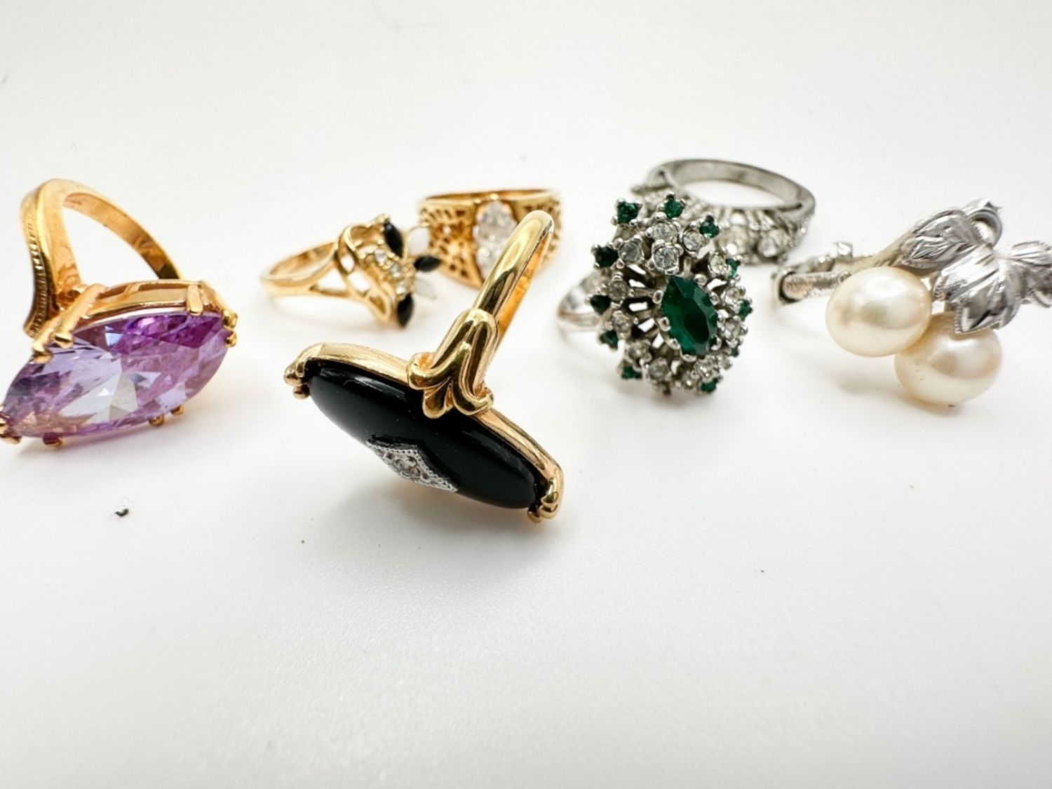 RINGS ASSORTMENT, ALL STYLES, SIZES AND CONDITIONS, MANY WITH STONES