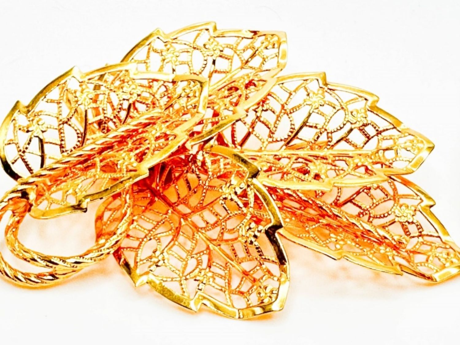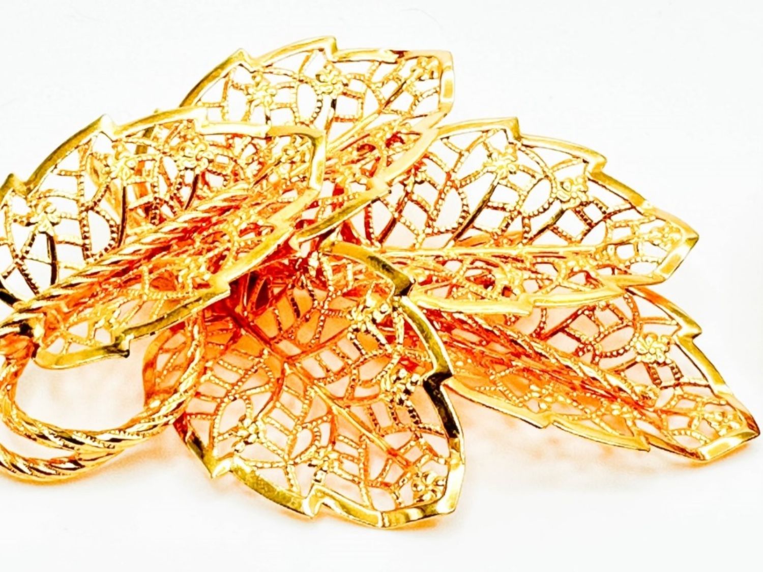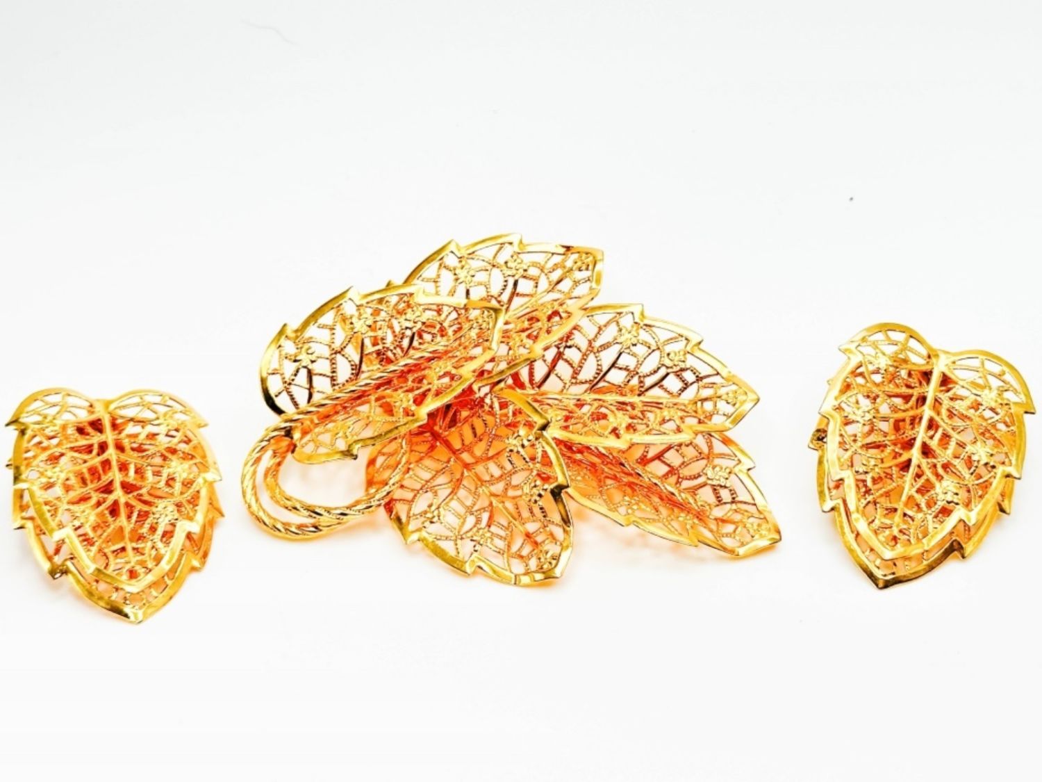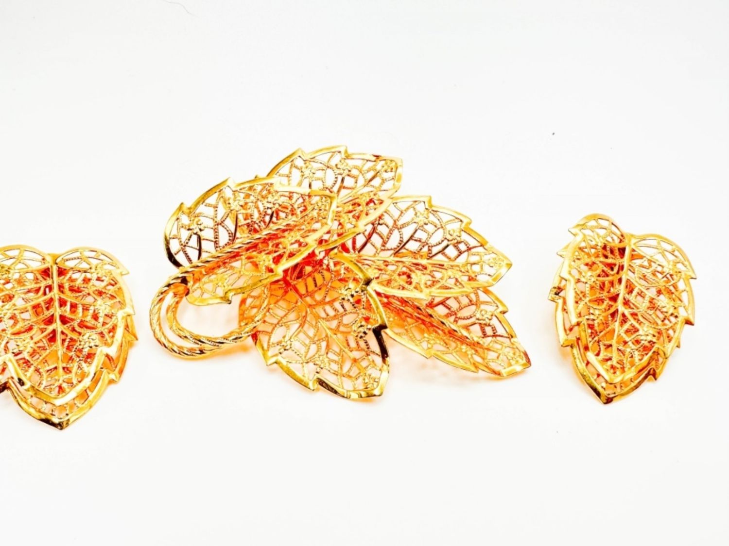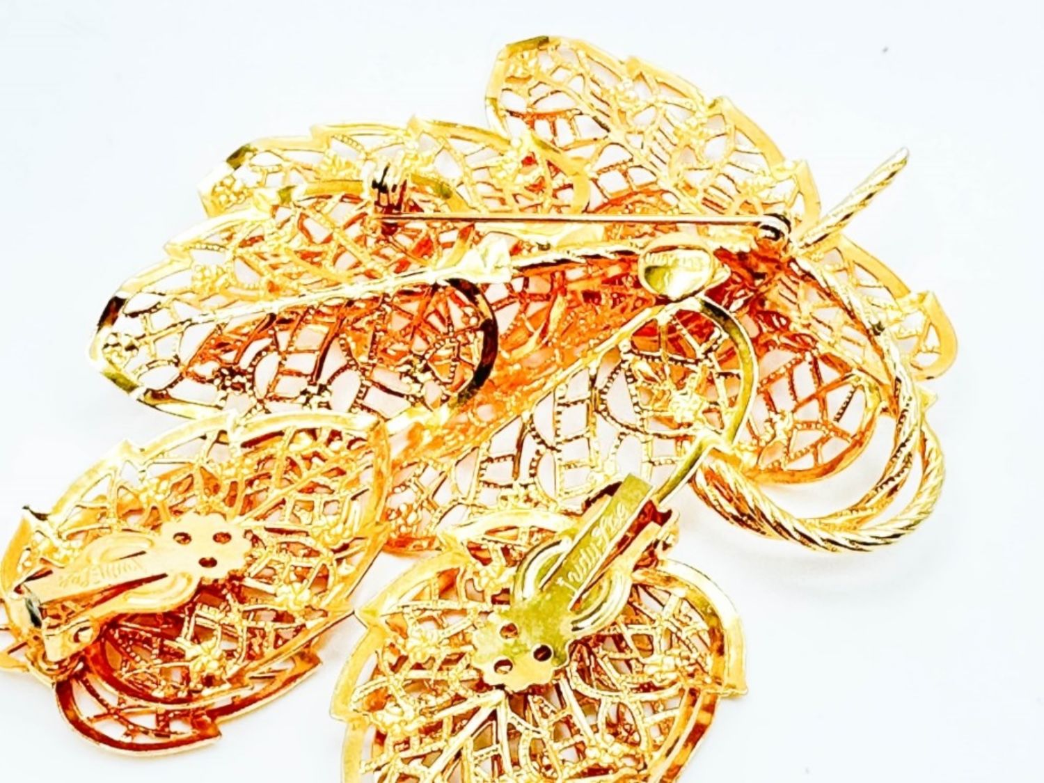 JUDY LEE VINTAGE SIGNED BROOCH AND EARRINGS SET IN GOLD TONE
