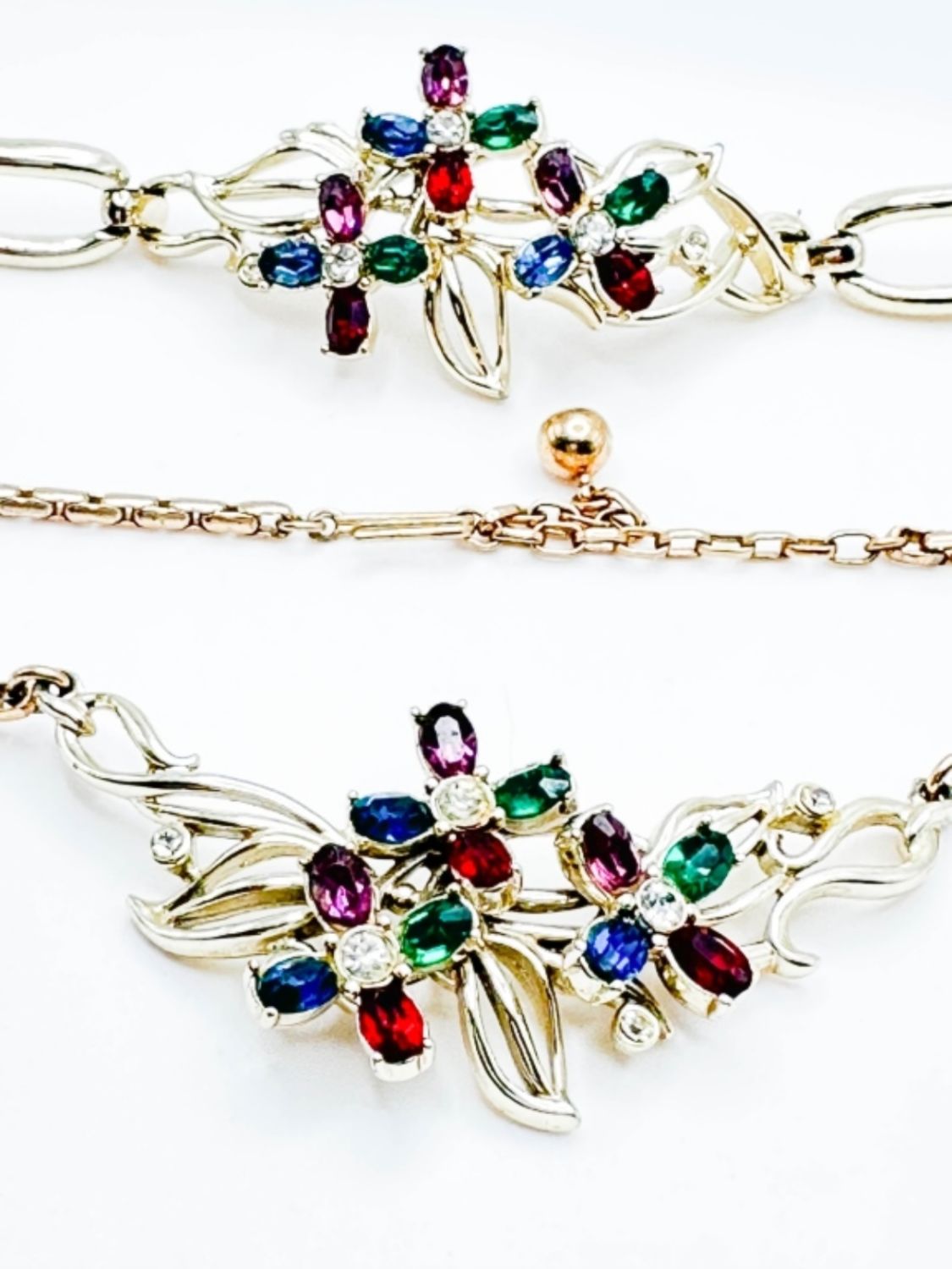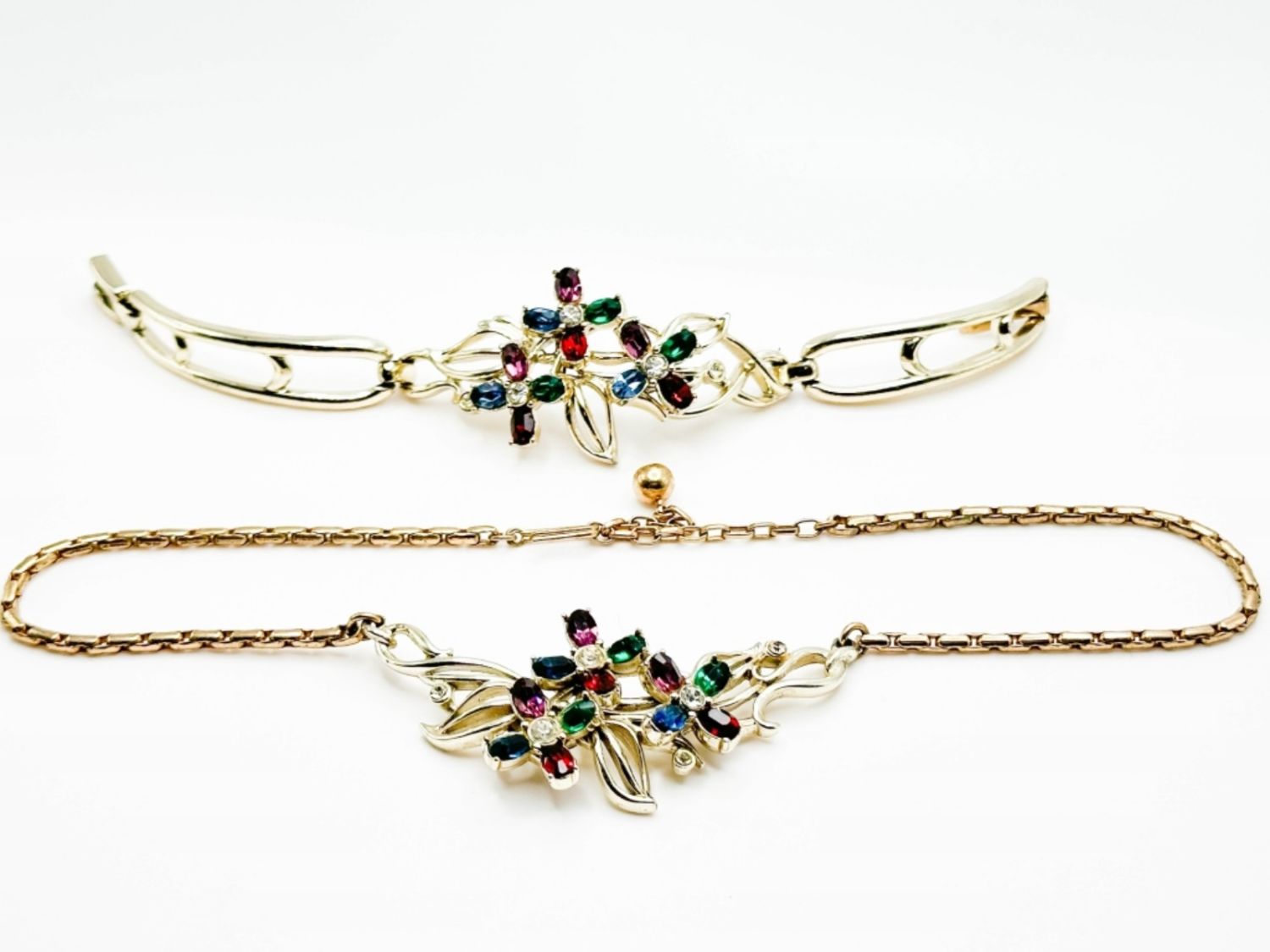 KRAMER VINTAGE SIGNED SET OF BRACELET AND NECKLACE WITH COLOR STONES ON BOTH