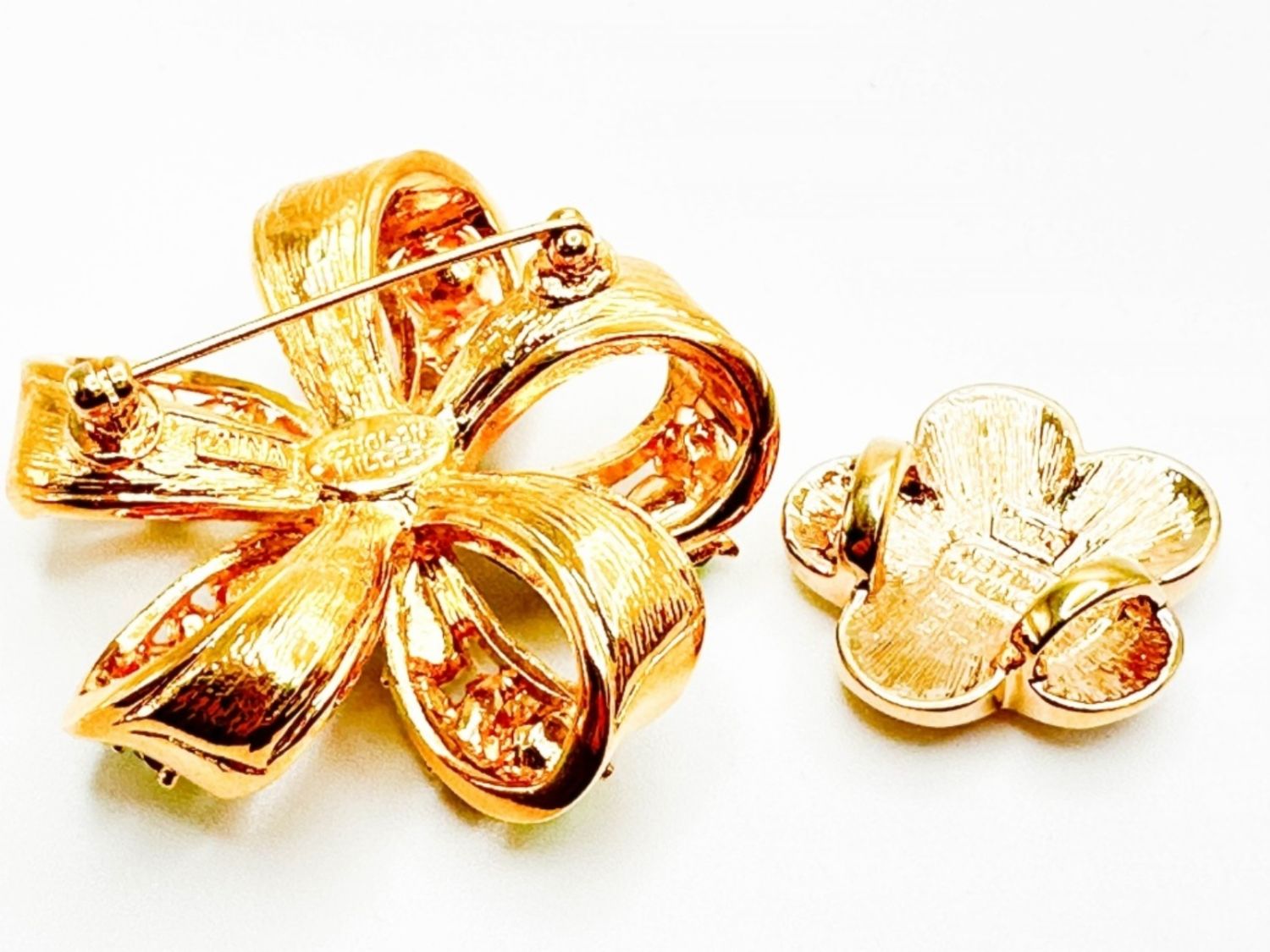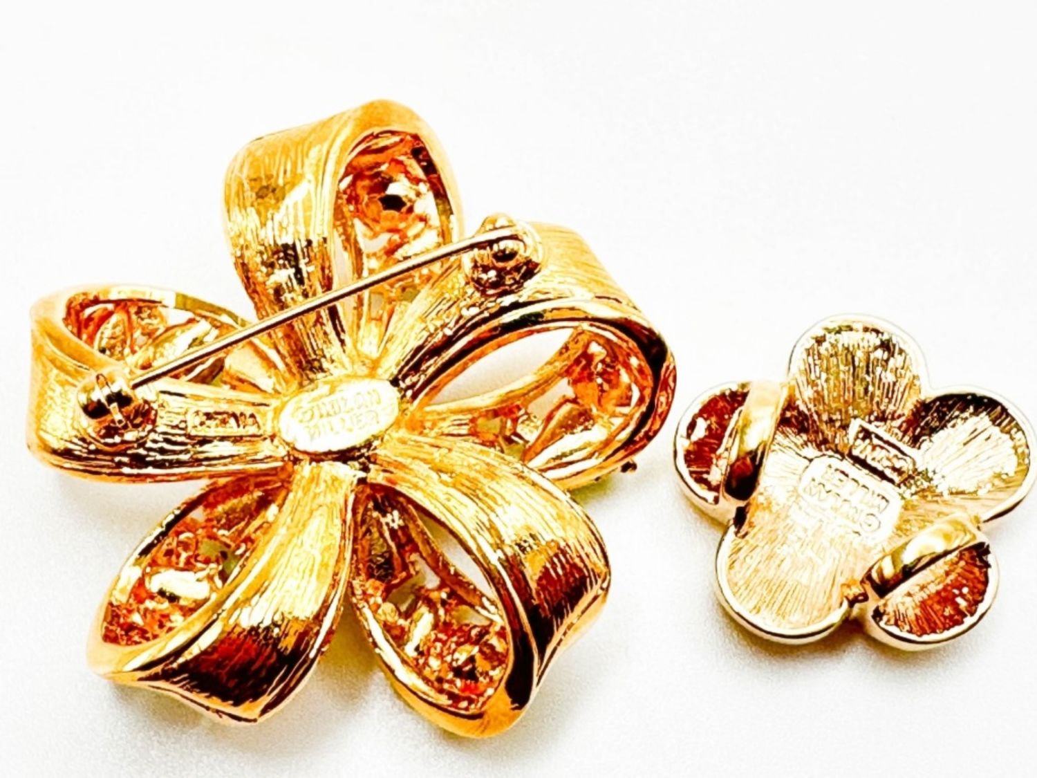 NOLAN MILLER VINTAGE COLOR AND CLEAR STONE BOW BROOCH , CLEAR STONE + NOLAN MILLER SIGNED PENDANT AMAAAZING