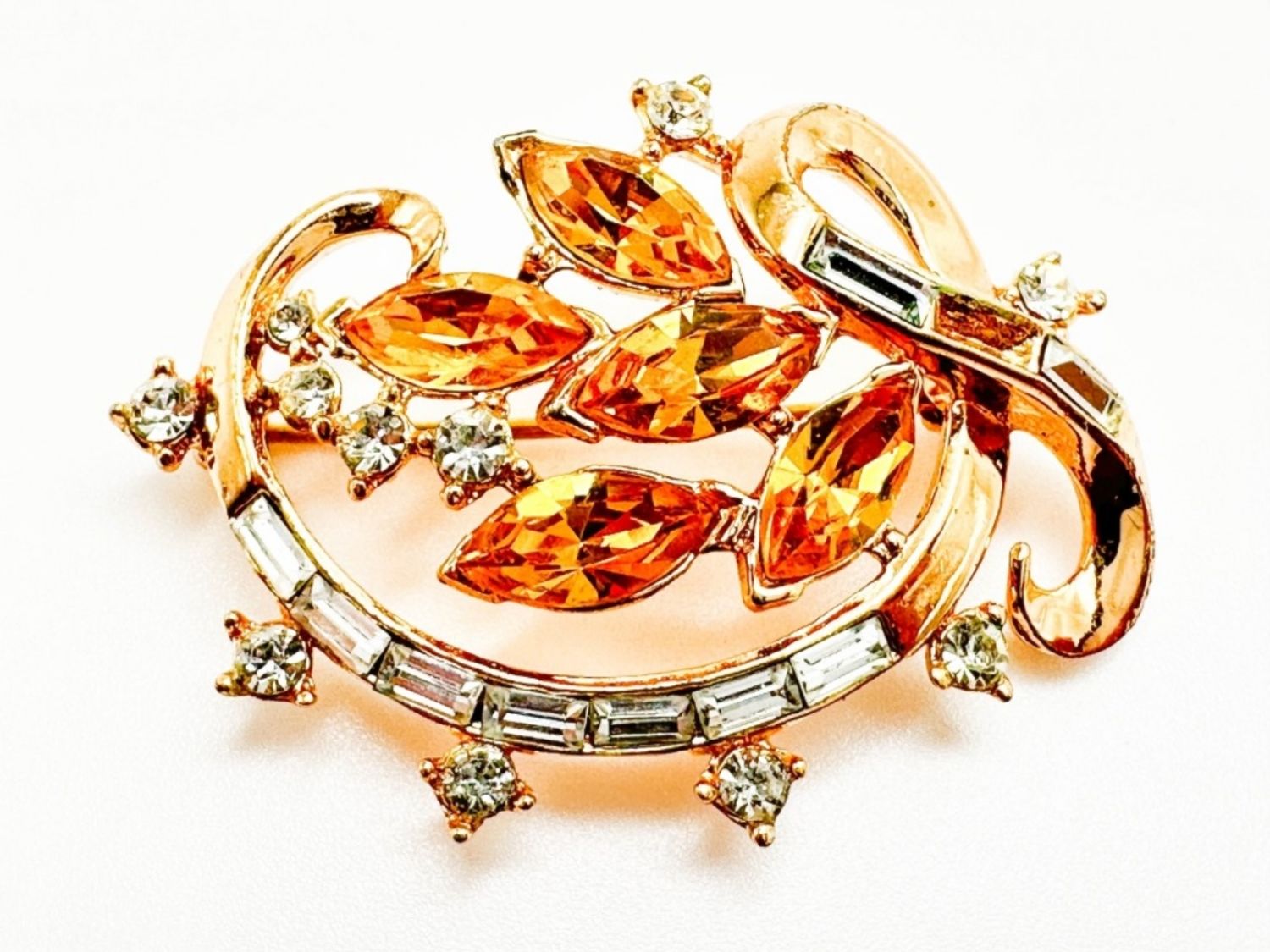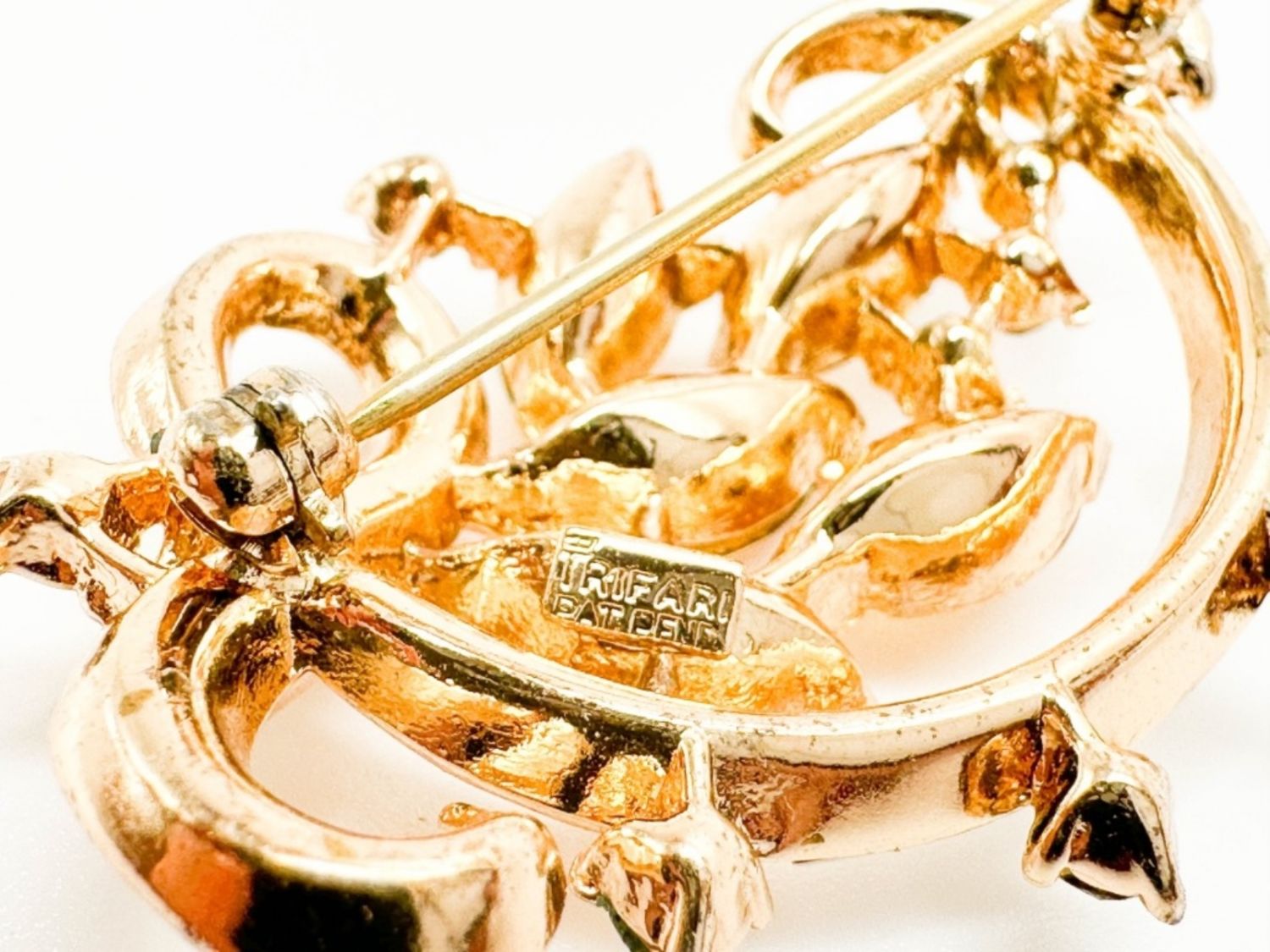 TRIFARI CROWN STONE BROOCH , SIGNED VINTAGE TRIFARI CROWN , MISSING STONE