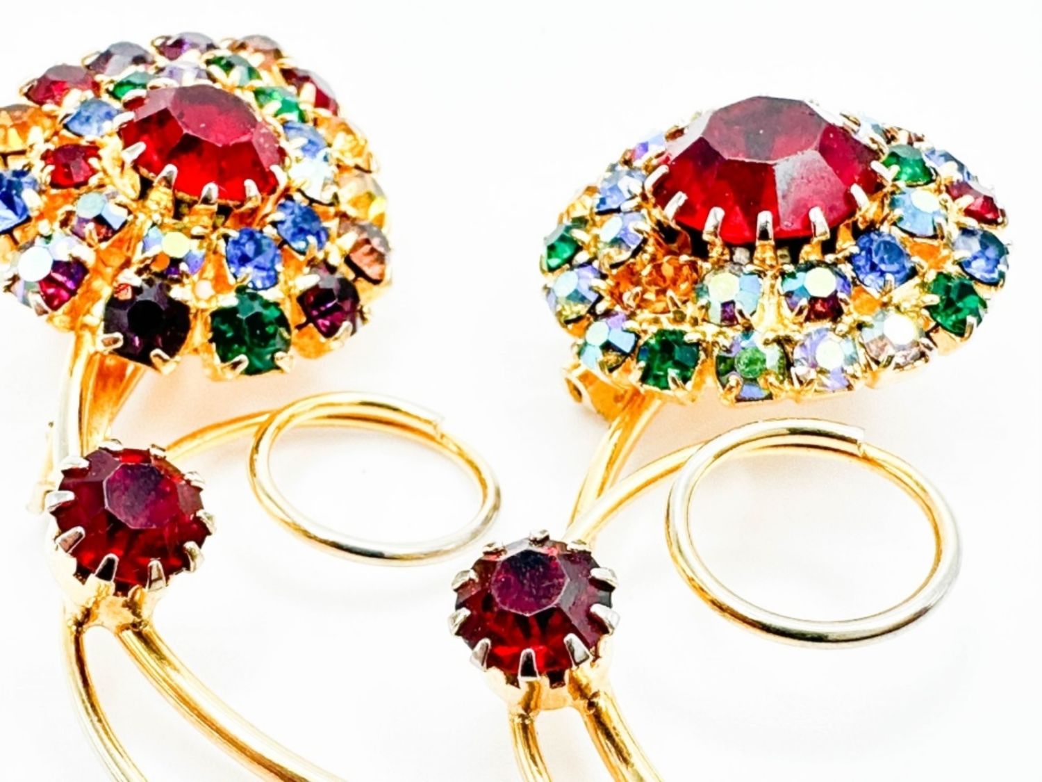 LOVELY FLORAL STONE BROOCH SET WITH LOT OF COLOR , SO PRETTY
