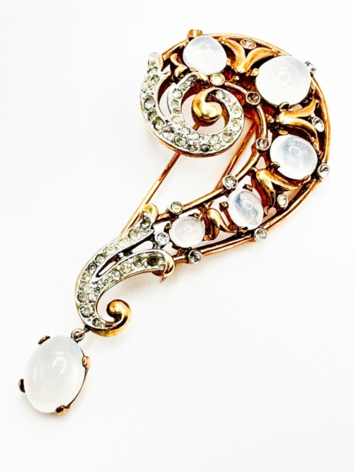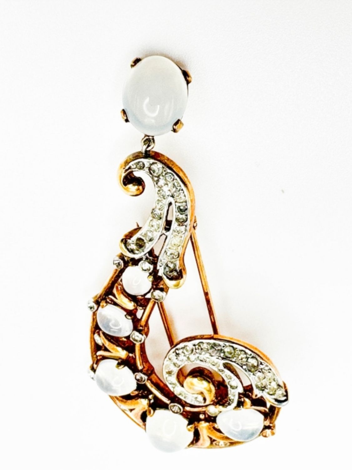TRIFARI CROWN STONE CLIP , SIGNED VINTAGE TRIFARI CROWN , AMAZING