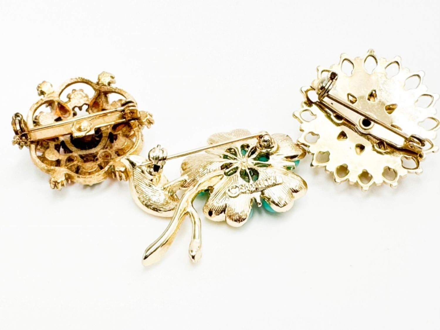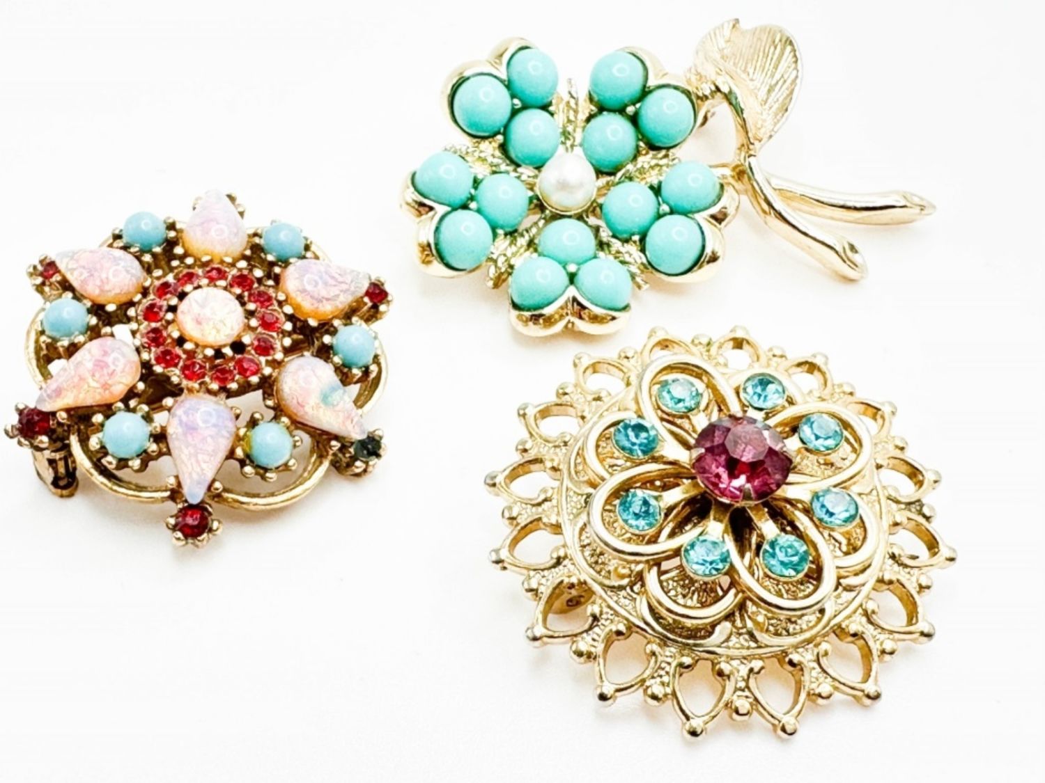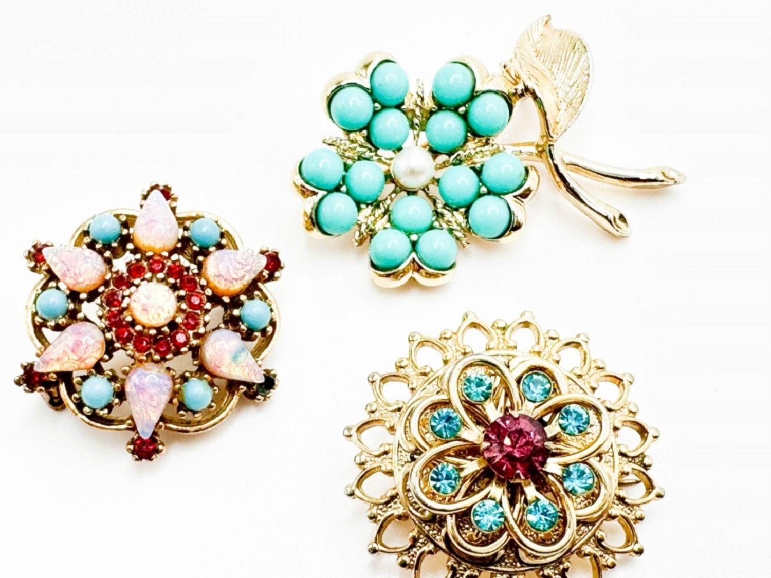 SARAH COVENTRY TURQUISE STONE BROOCH AND TWO STONE BROOCH , STUNNING