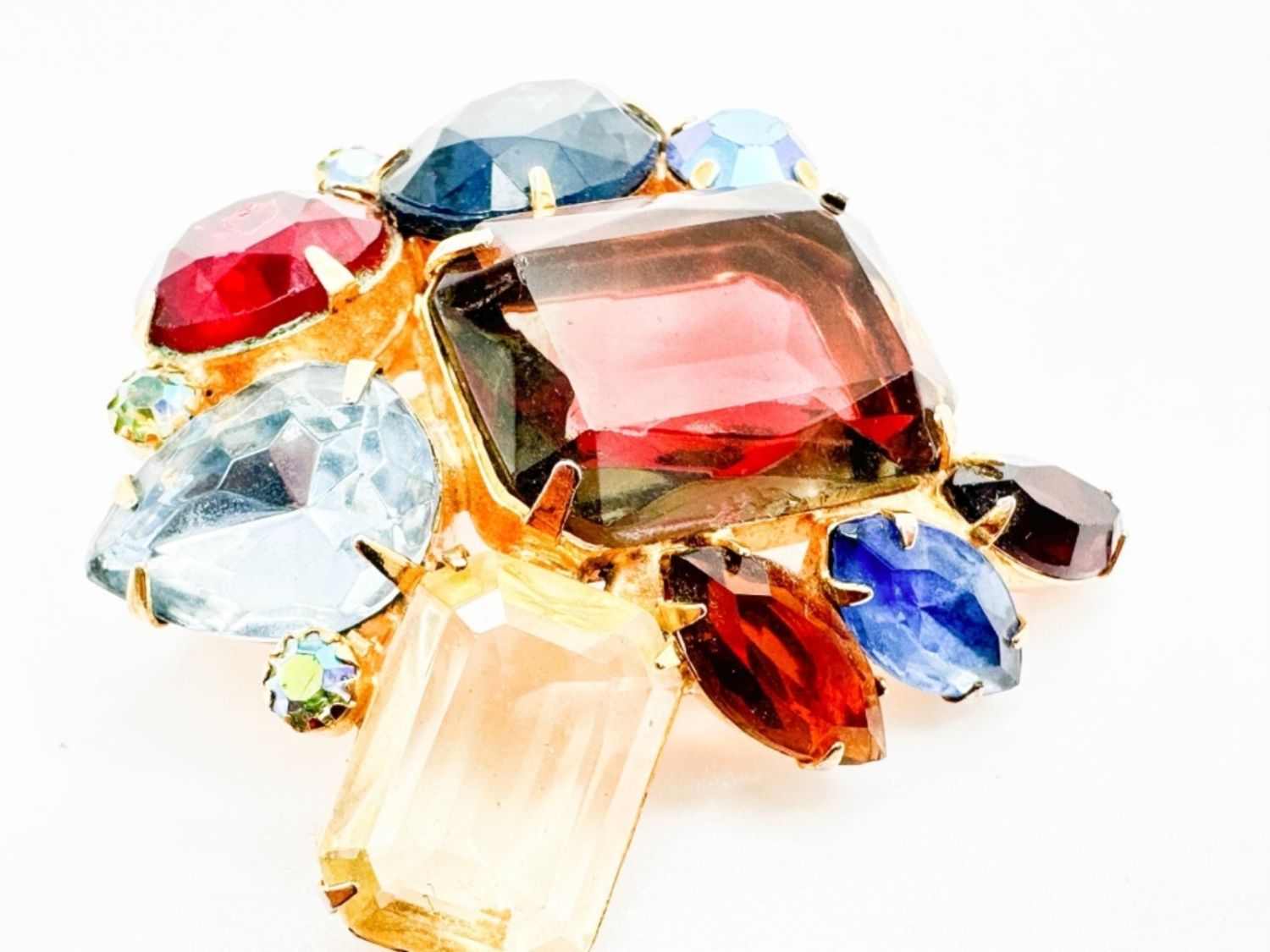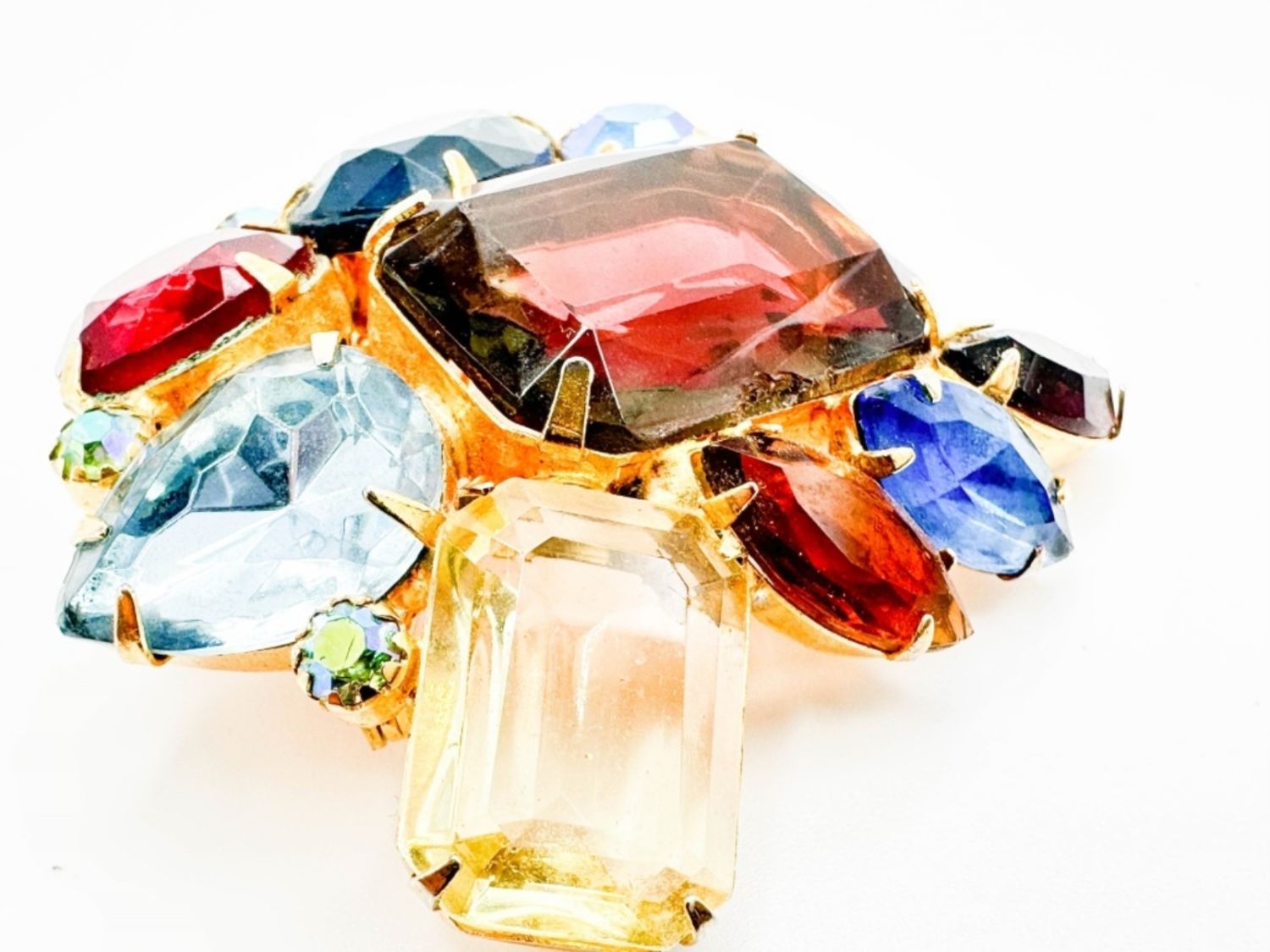 COLOR BROOCH WITH LARGE STONES IN VARIOUS COLORS AND SHAPES