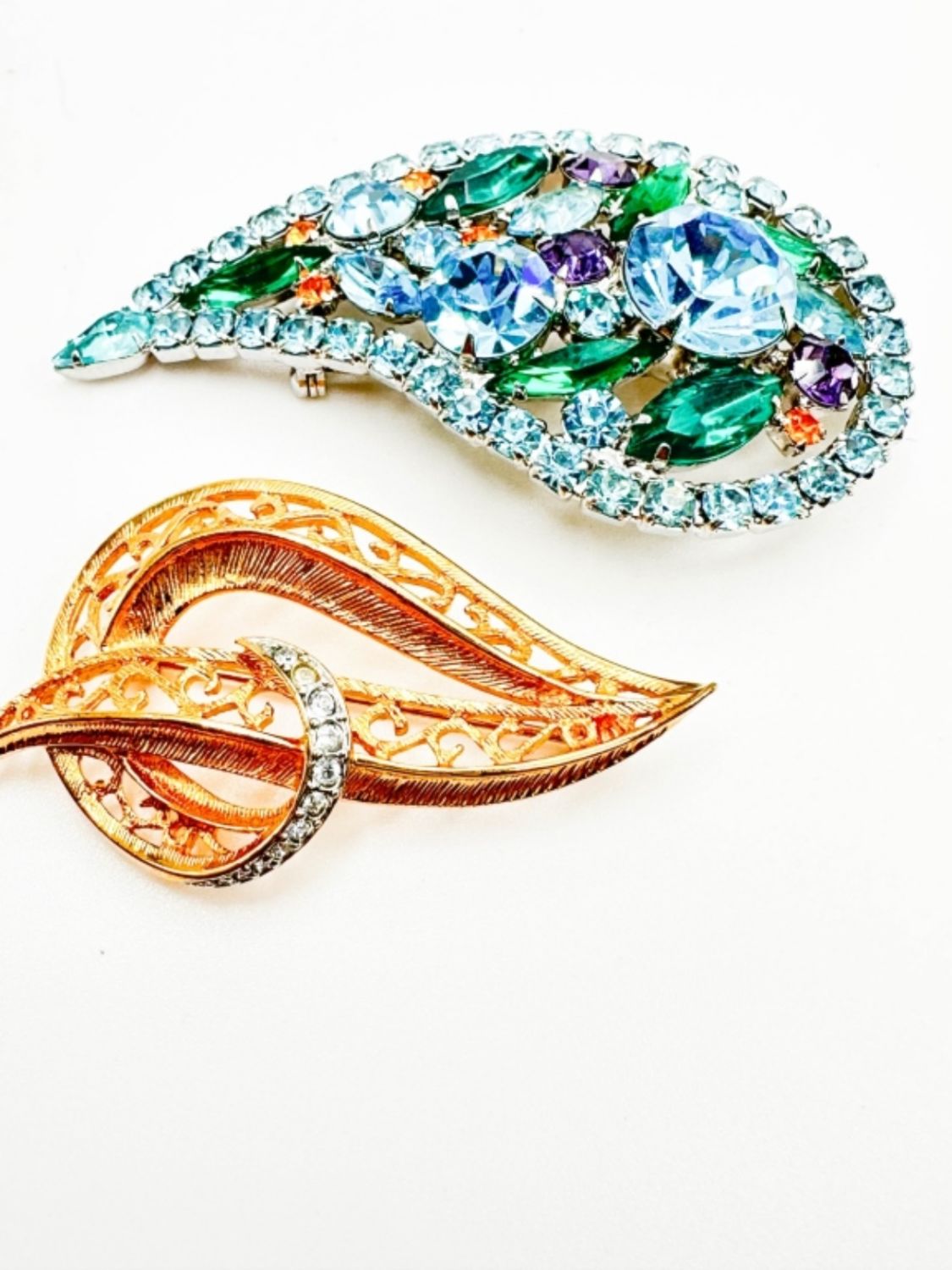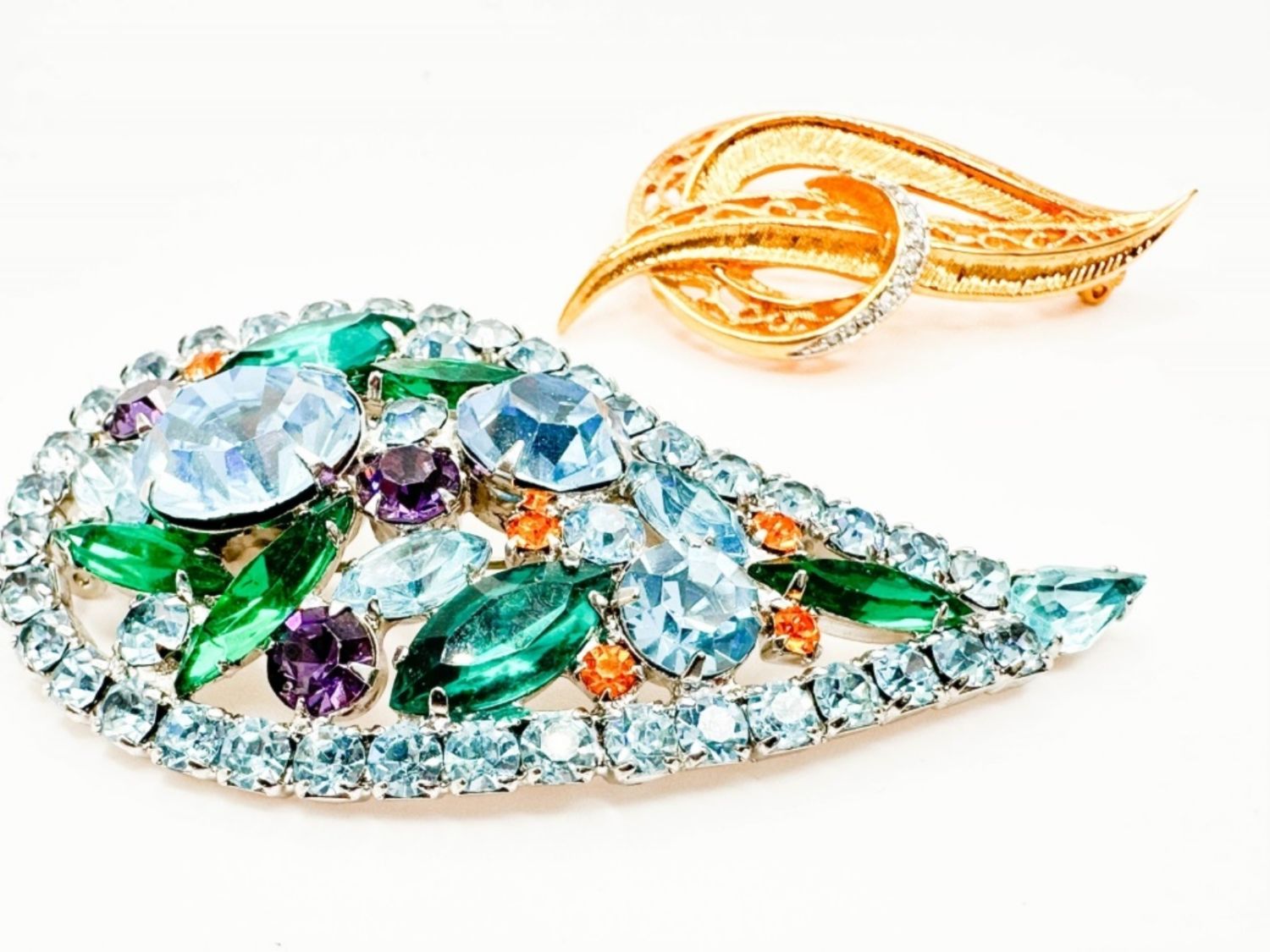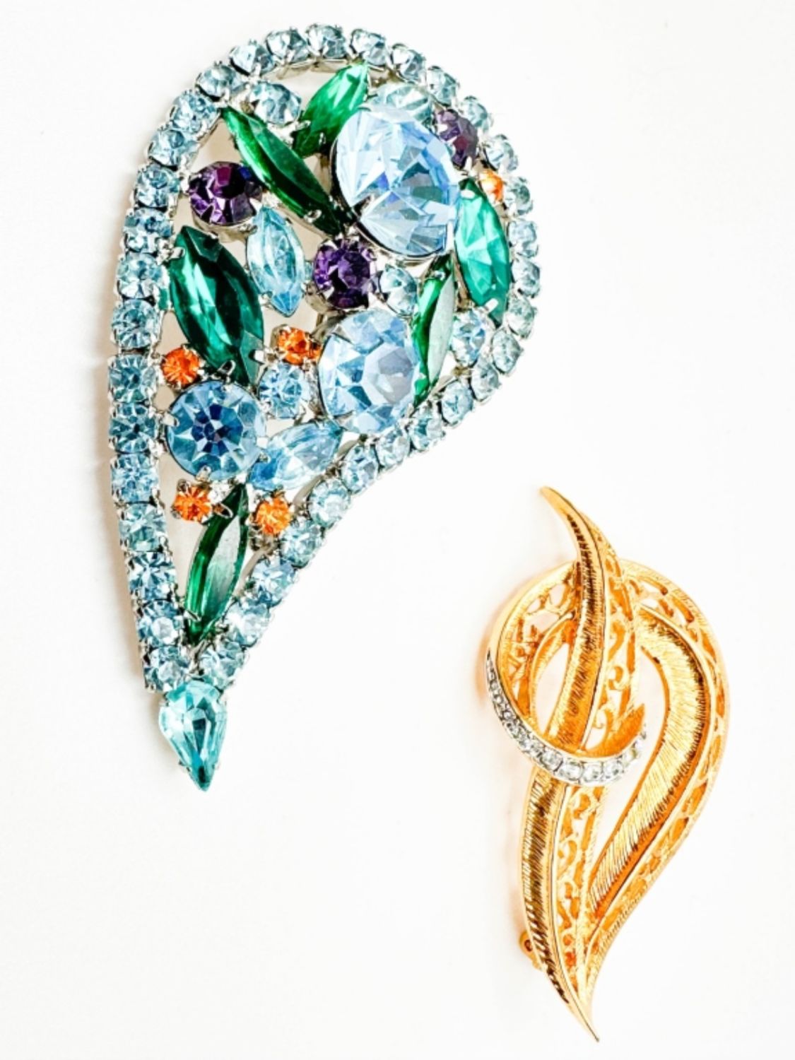 STUNNING COLOR STONE BROOCH AND CLEAR STONE BROOCH