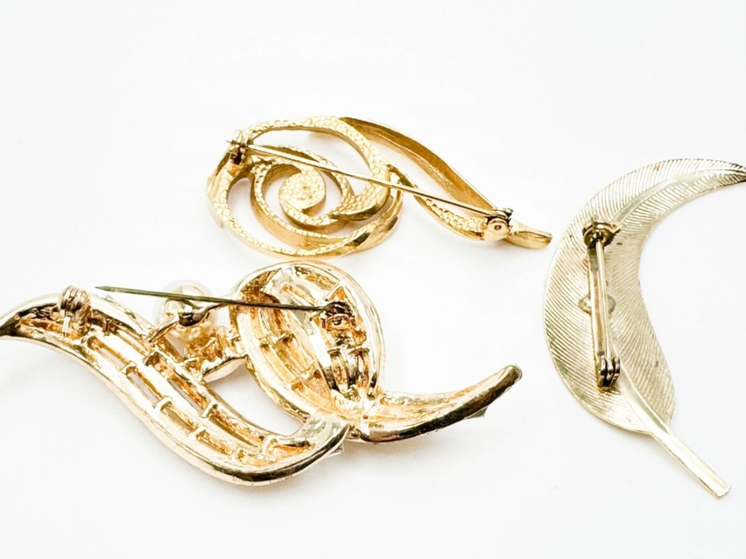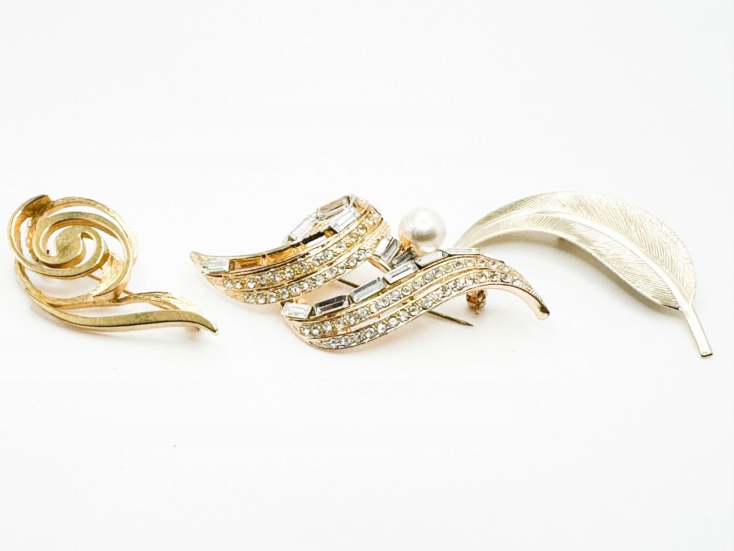 3 VINTAGE BROOCHES, ONE MISSING STONES