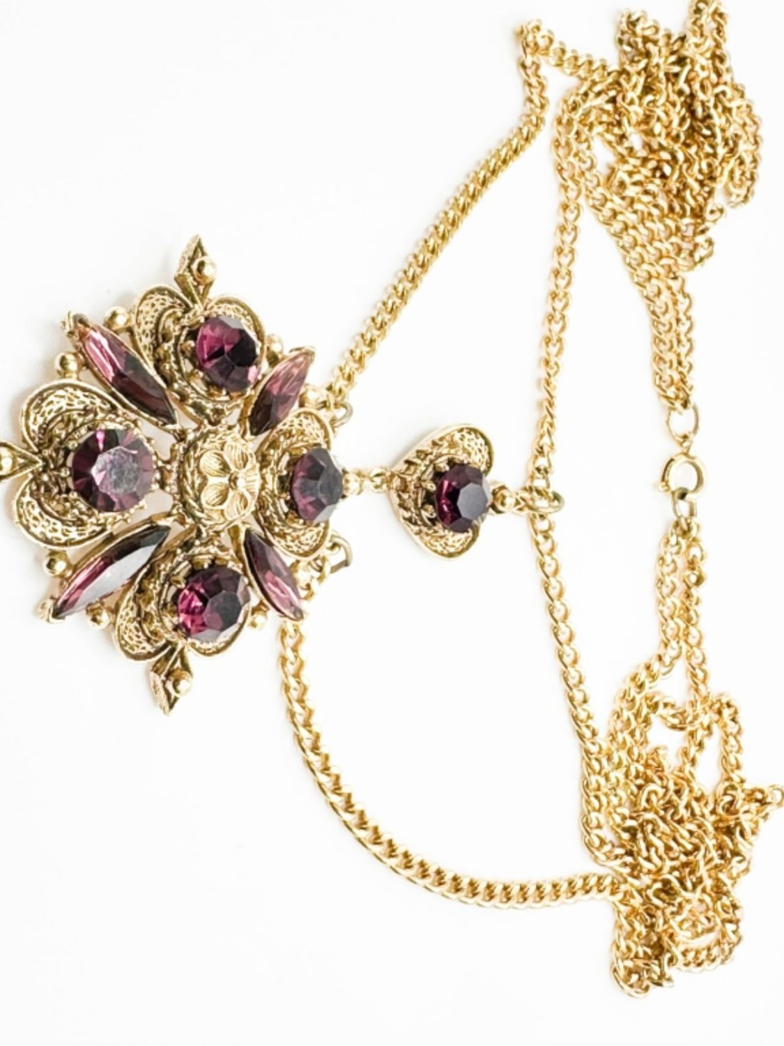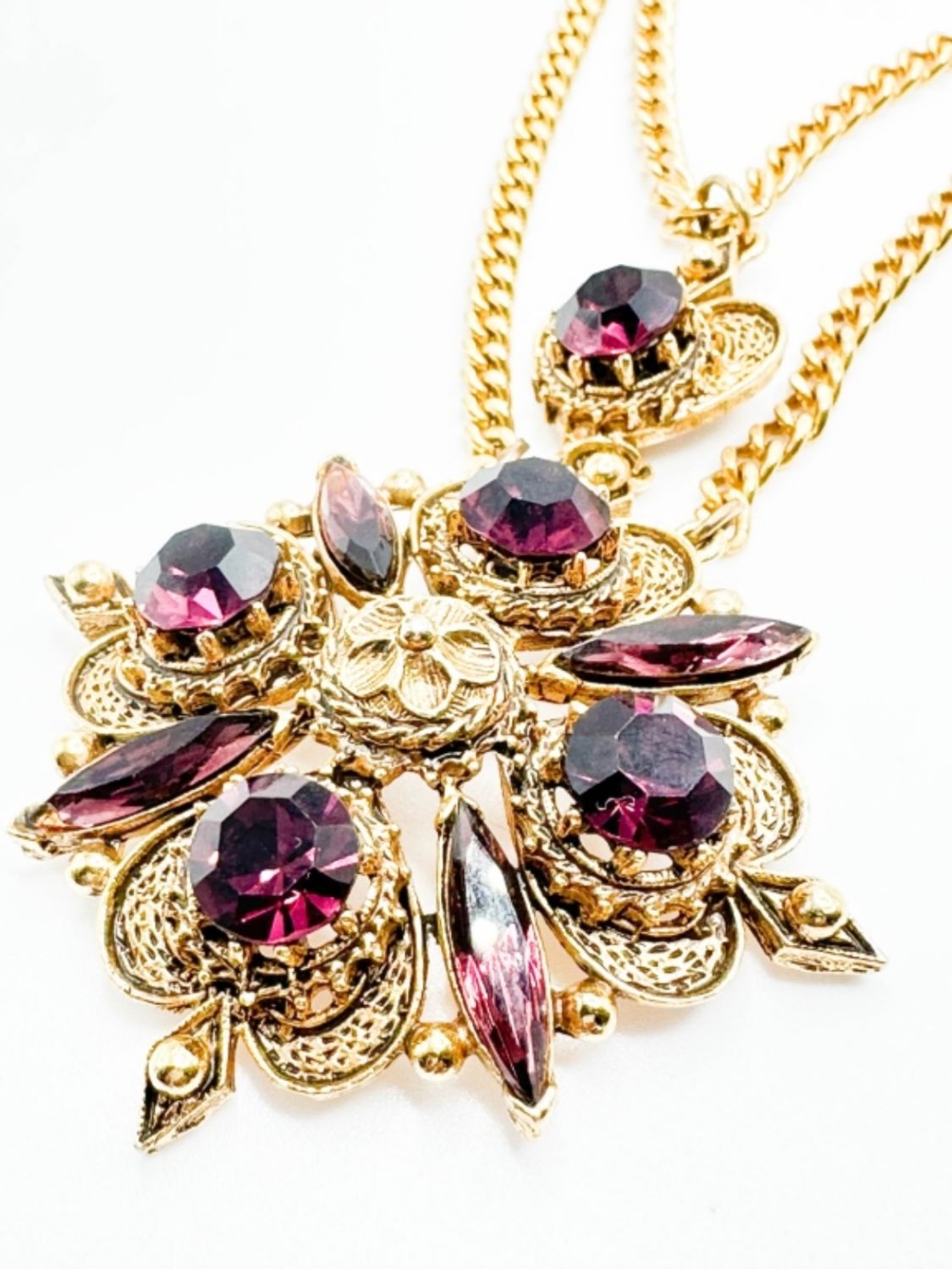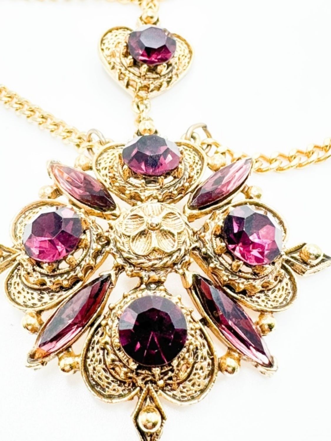 AMAZING VINTAGE SIGNED FLORENZA NECKLACE WITH AMETHYST COLOR STONES , TRULY AMAZING PIECE