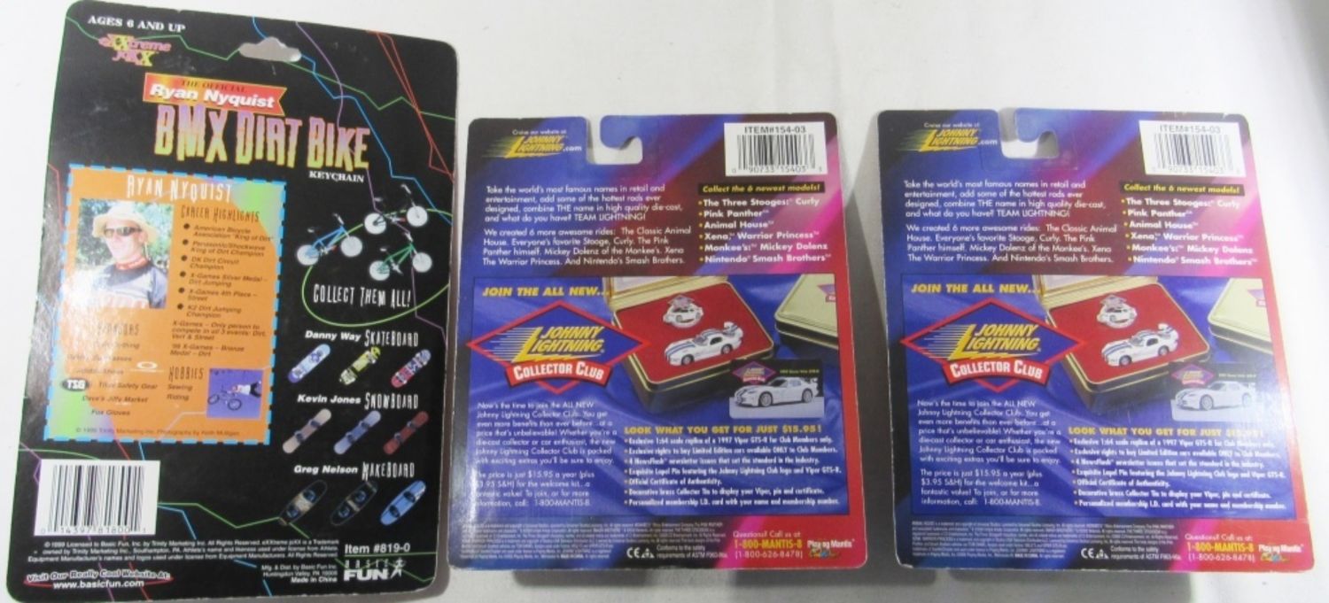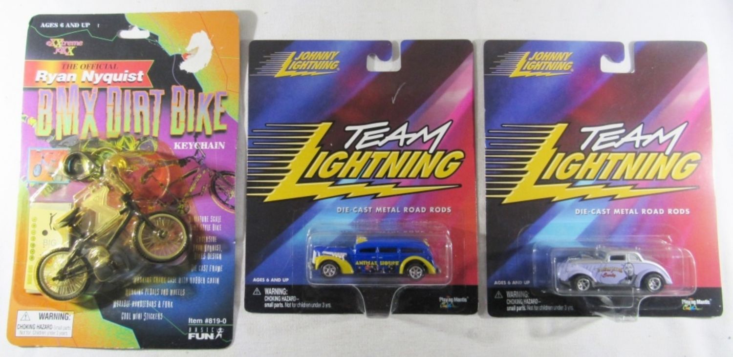 5 JOHNNY LIGHTNING, 1 DUKES OF HAZARD AND ONE BMX DIRT BIKE KEY CHAIN
