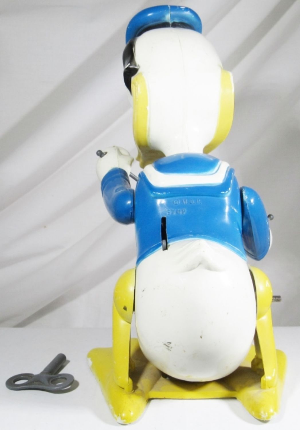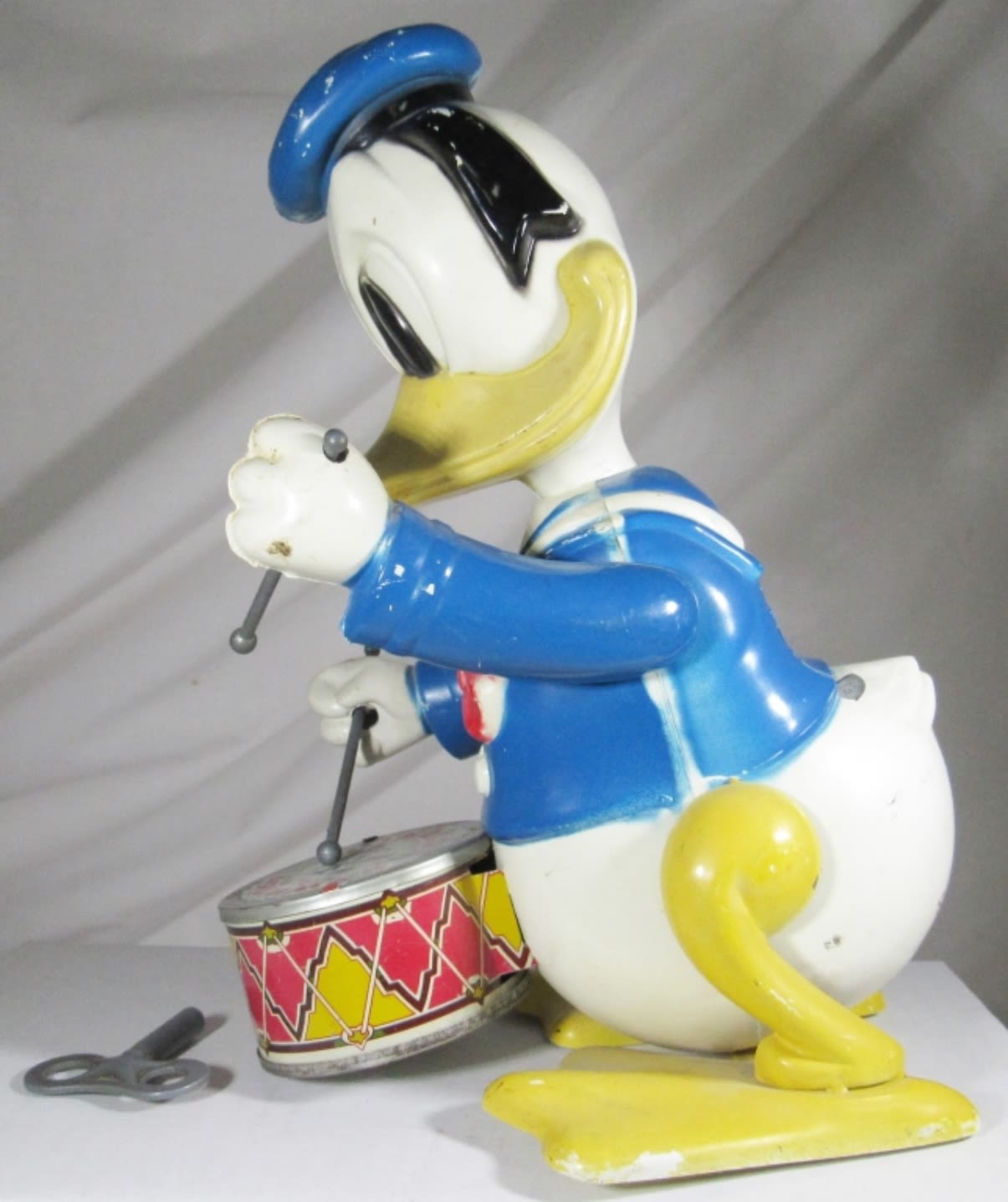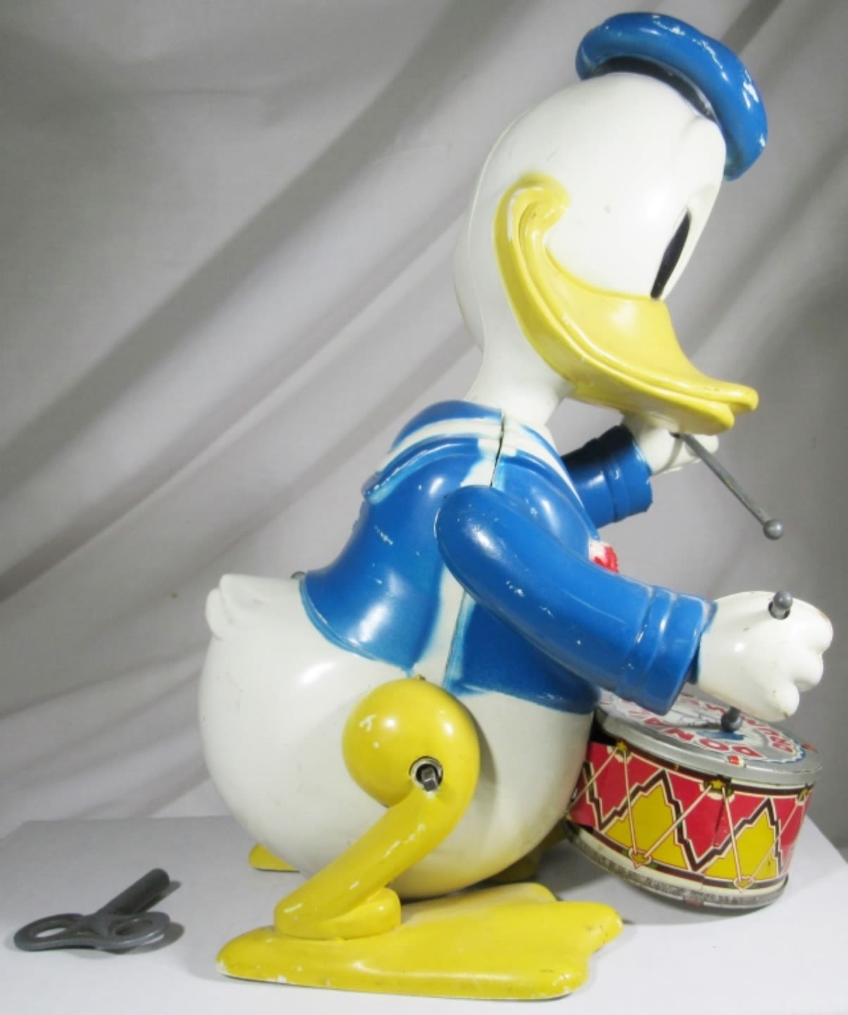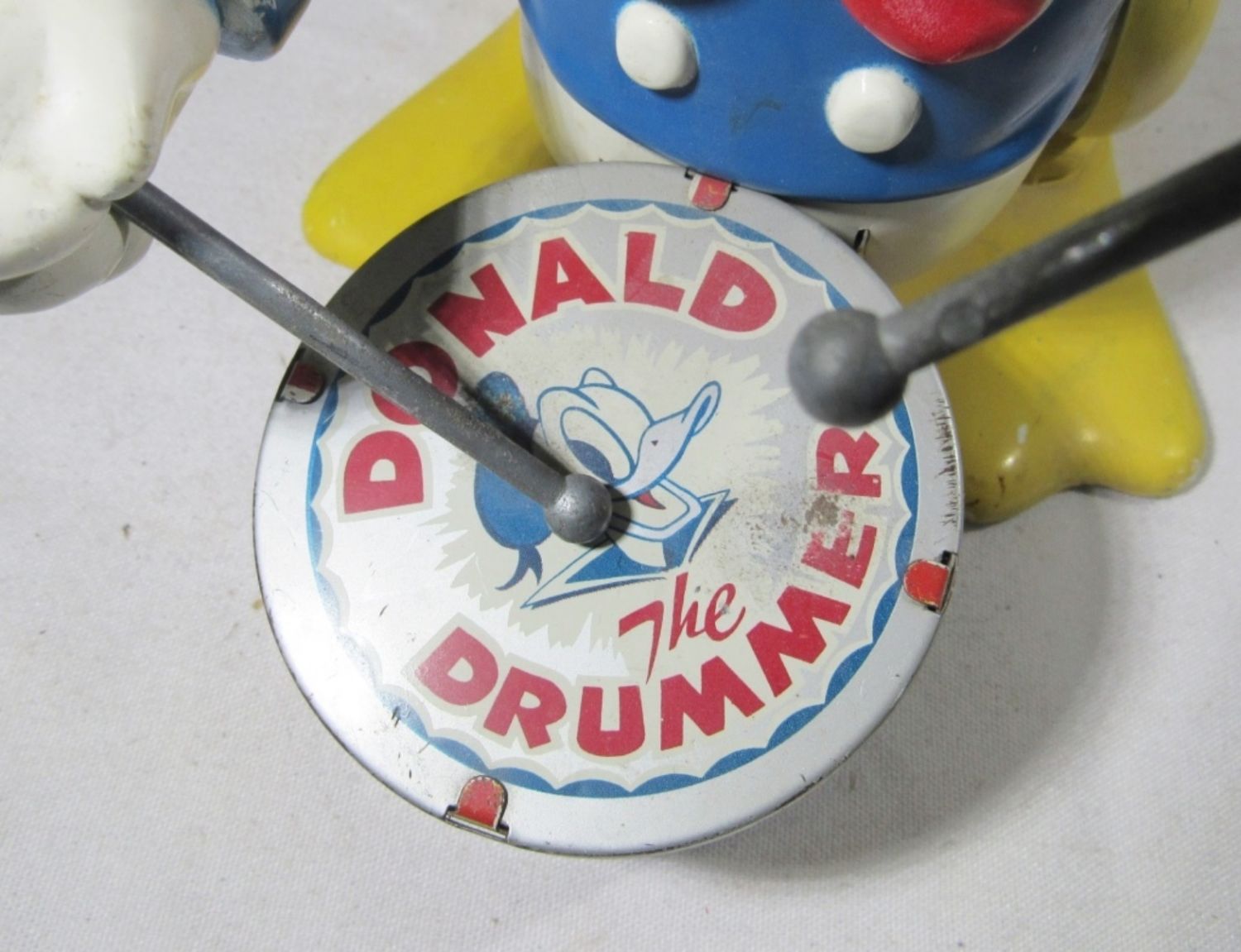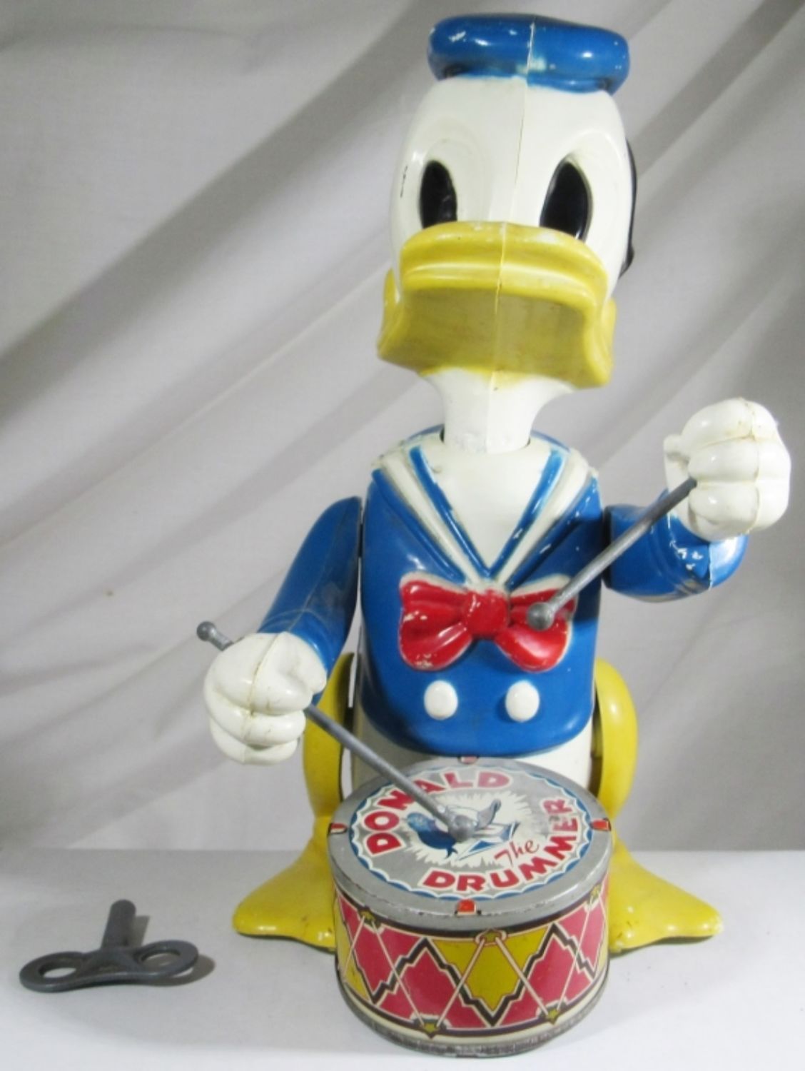 THE DRUMMER TIN LITHO WIND UP TOY By LOUIS MARX 10″ – DOES WIND UP BUT WORKS SLOWLY- NOT ORIGINAL KEY
