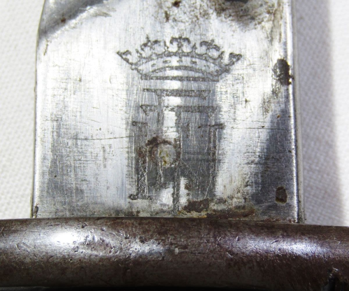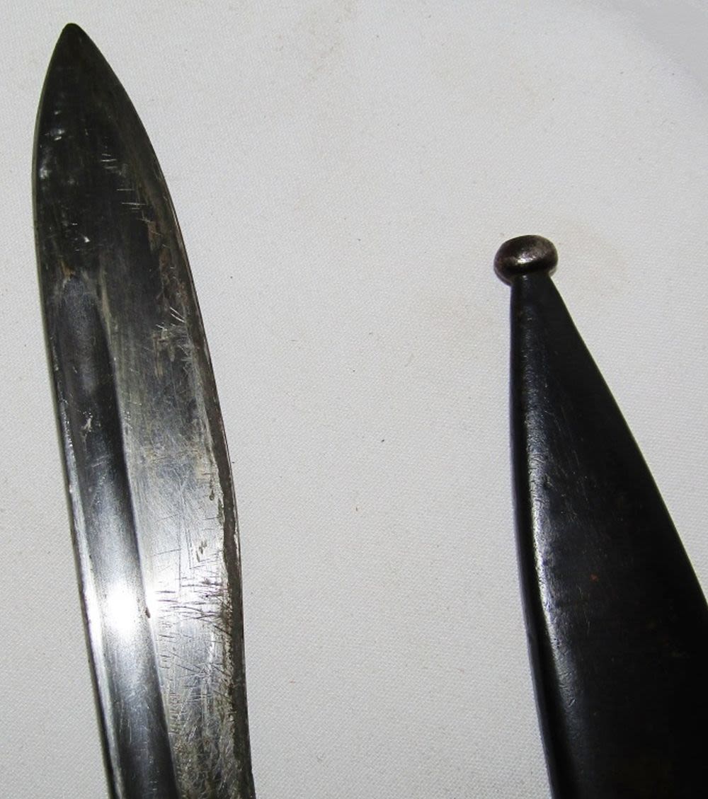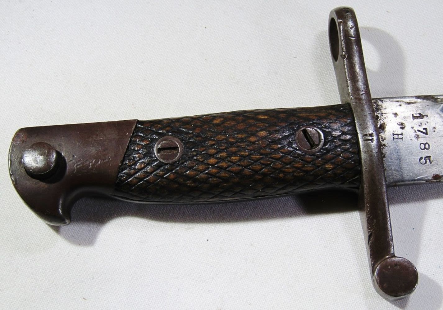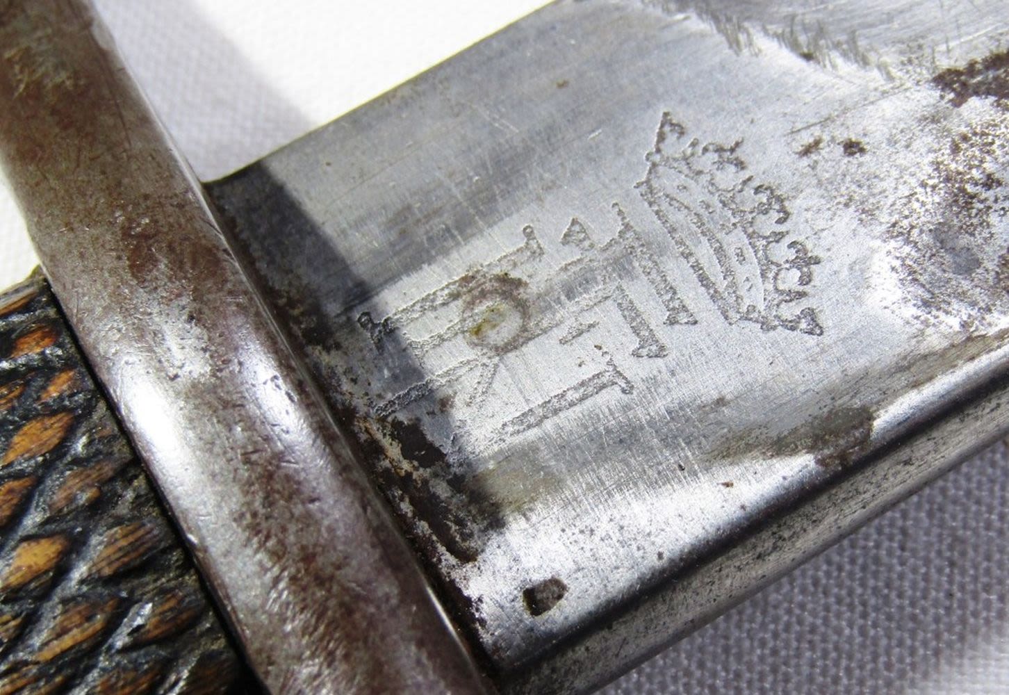 With Scabbard! Blade is marked 1785 H; Blade Length 9 3/4″ – Overall Length 14 5/8″.