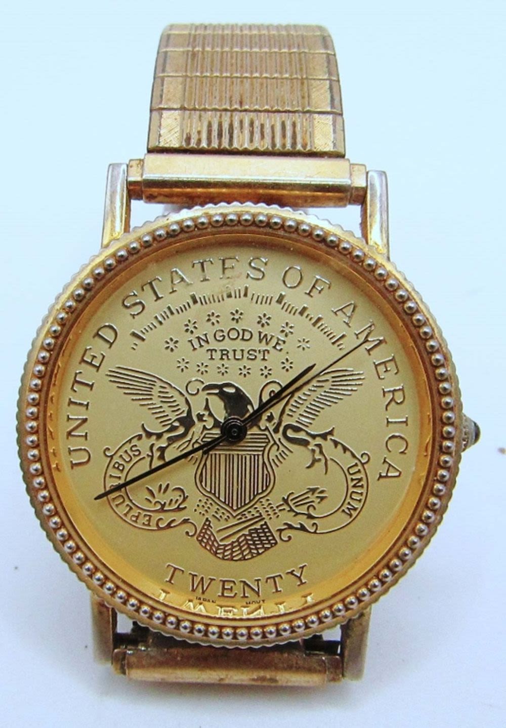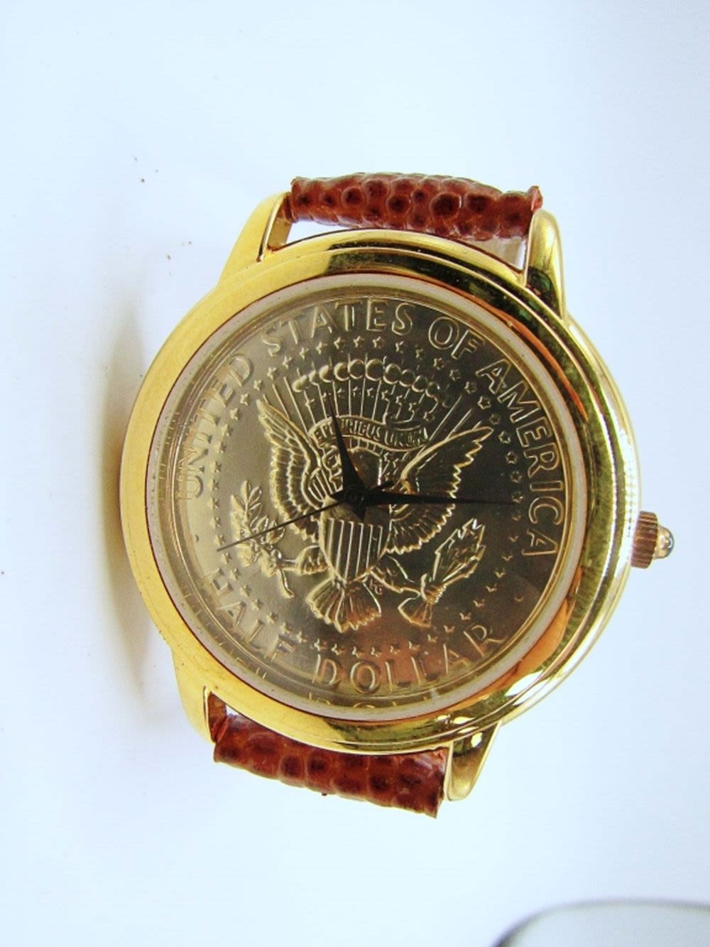 TONED HALF DOLLAR AMERICAN HISTORIC LEATHER BAND WATCH, U.S. TWENTY “COPY” COIN WATCH – ALL UNTESTED