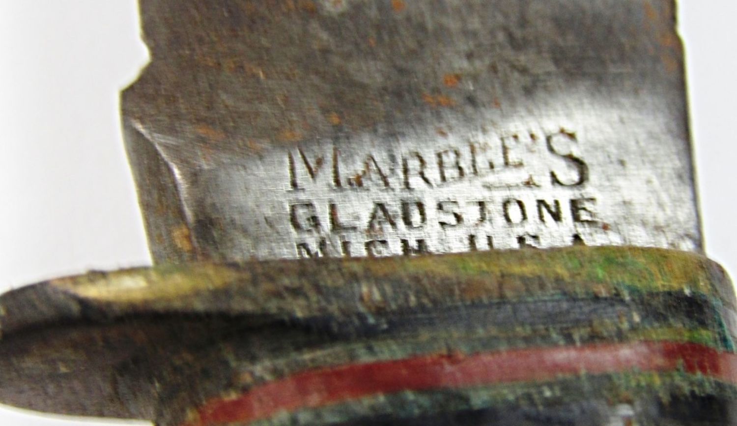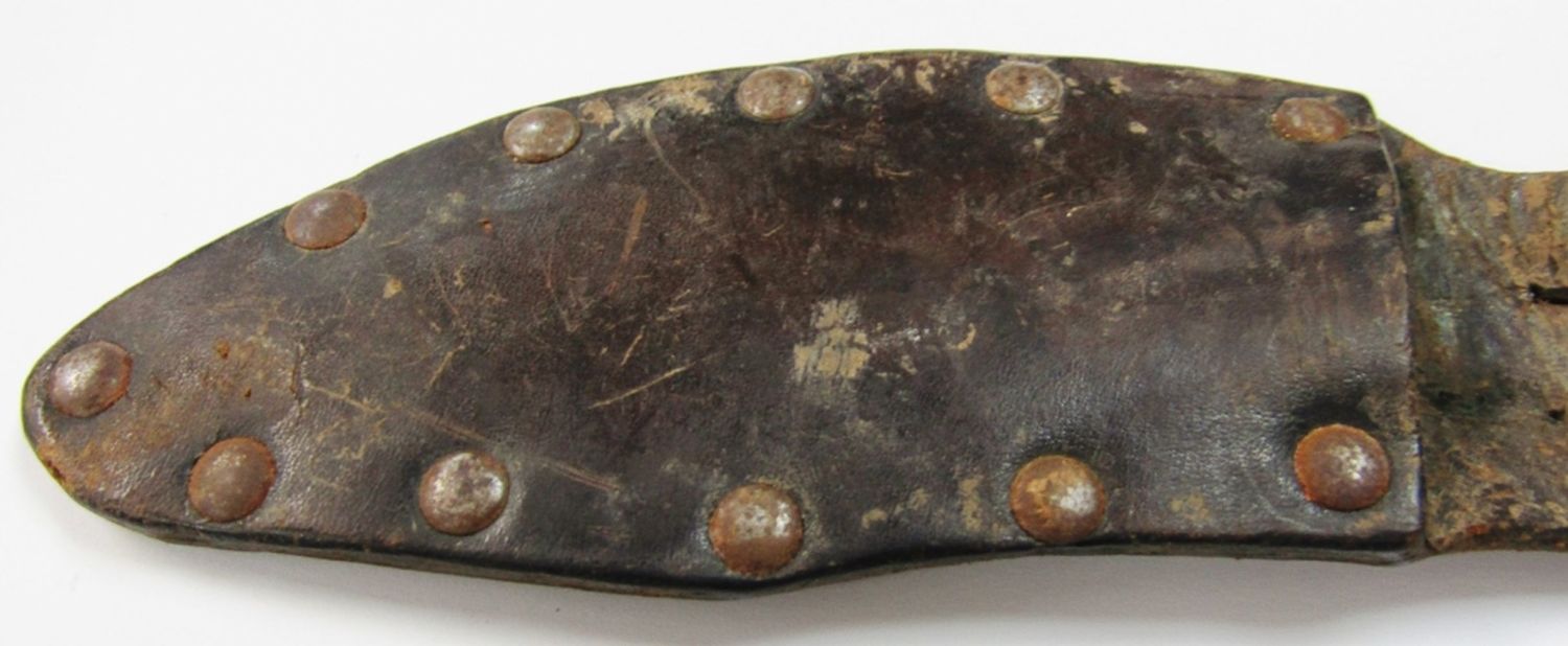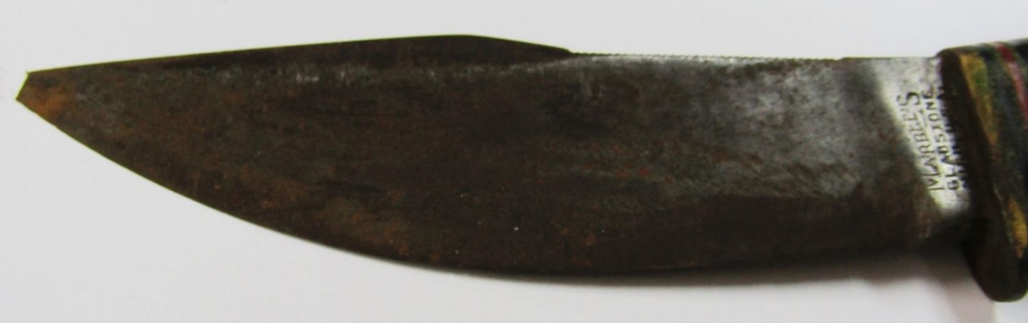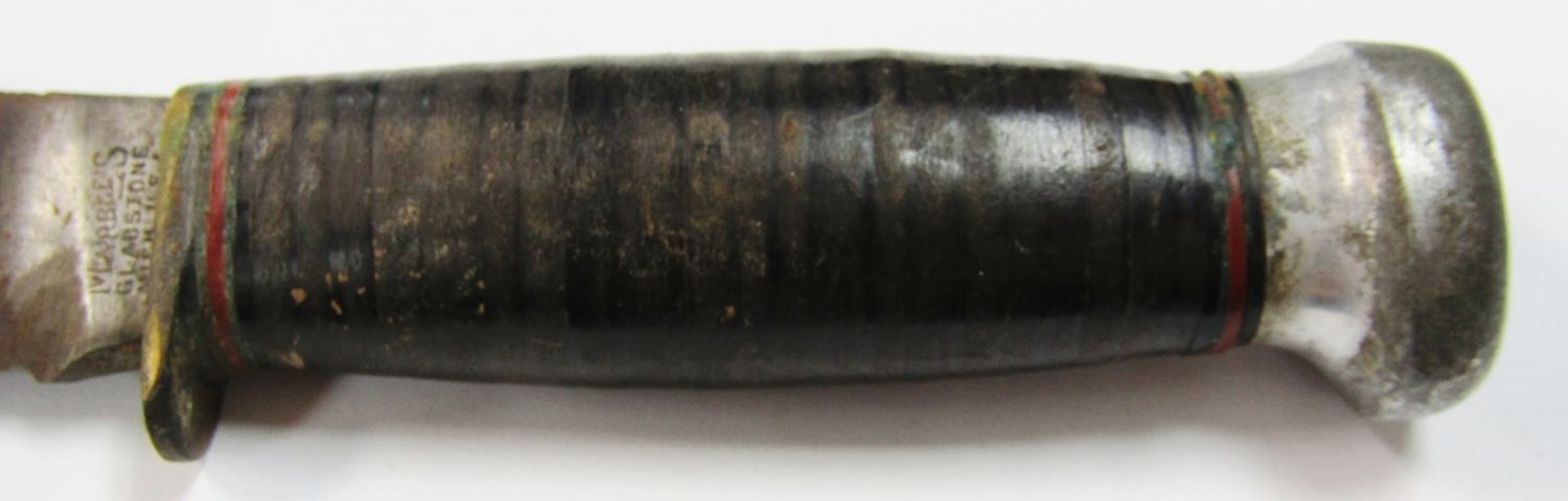 Pat’d 1916 WWII Handmade Sheath! Blade Legth 4 1/4″ – Overall Length 8 1/4″; Used Condition, Small Chip on Tip of Blade!