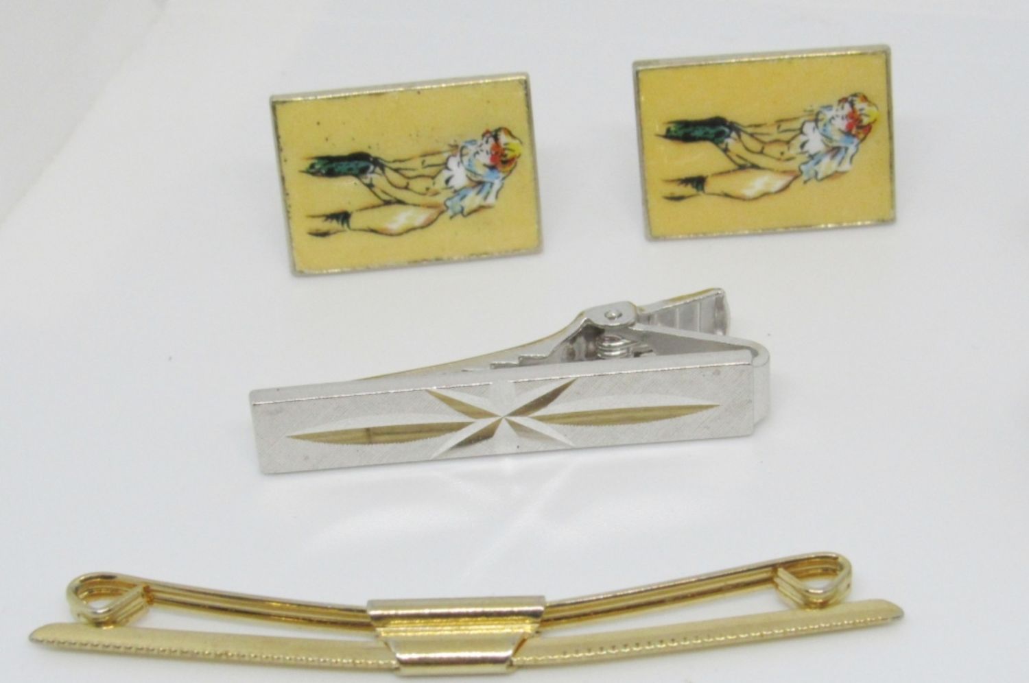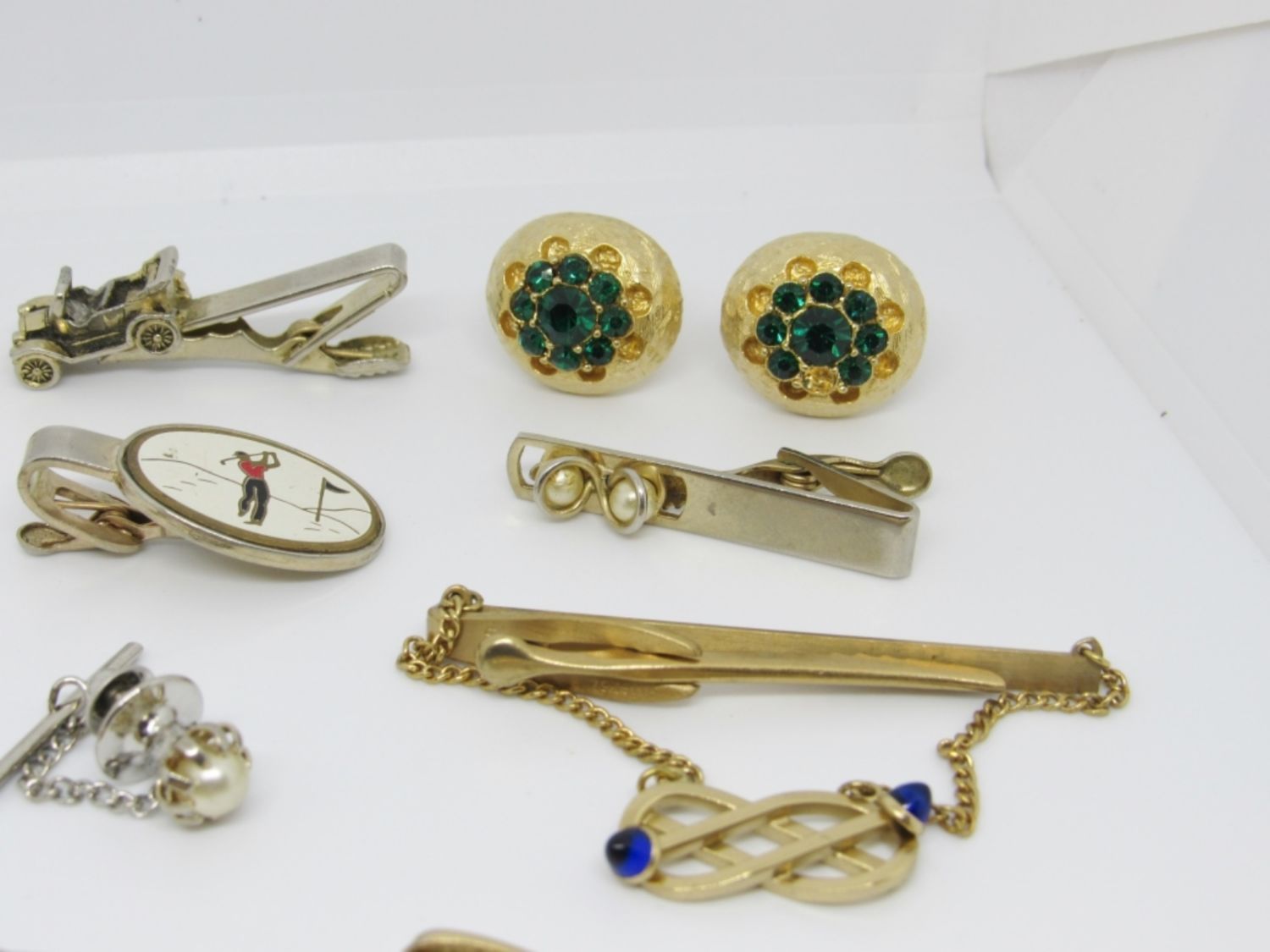 GREEN SET of CUFF LINKS MISSING (1) STONE