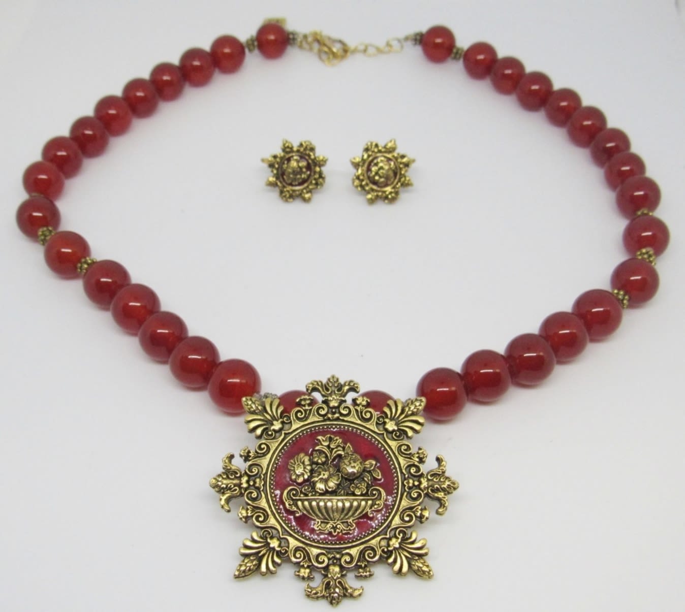 16″ NECKLACE with BURNT ORANGE GLASS BEADS & MATCHING EARRING CLIP ON