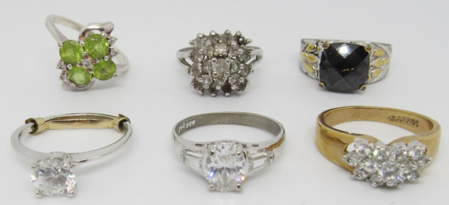 (3) STERLING – SIZES 6-8 (1) SIZE 9 CLUSTER RING