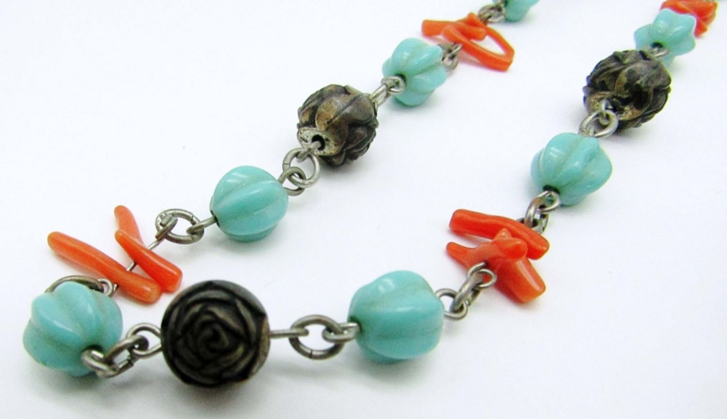 TURQUOISE / CORAL CHOCKER NECKLACE