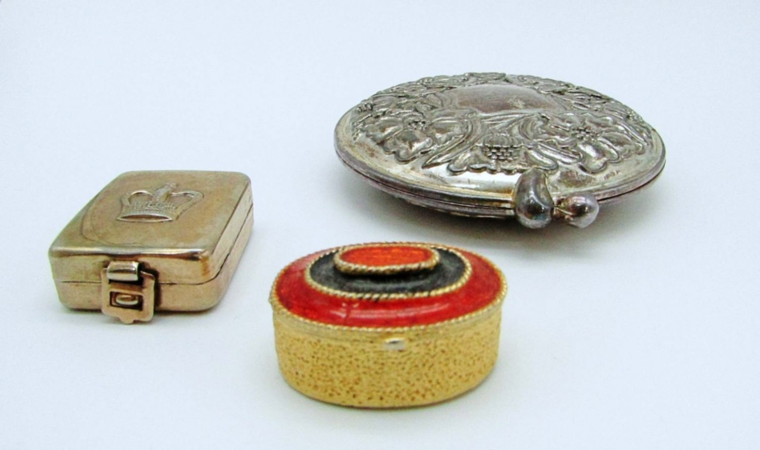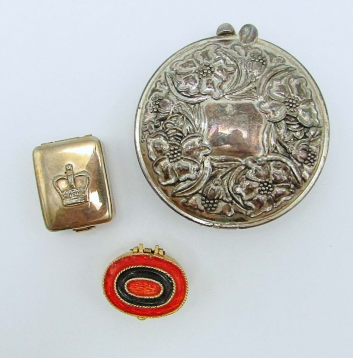 (1) EARLY CROWN on TOP SILVER TOWN BOX with LEAF CHARM INSIDE –