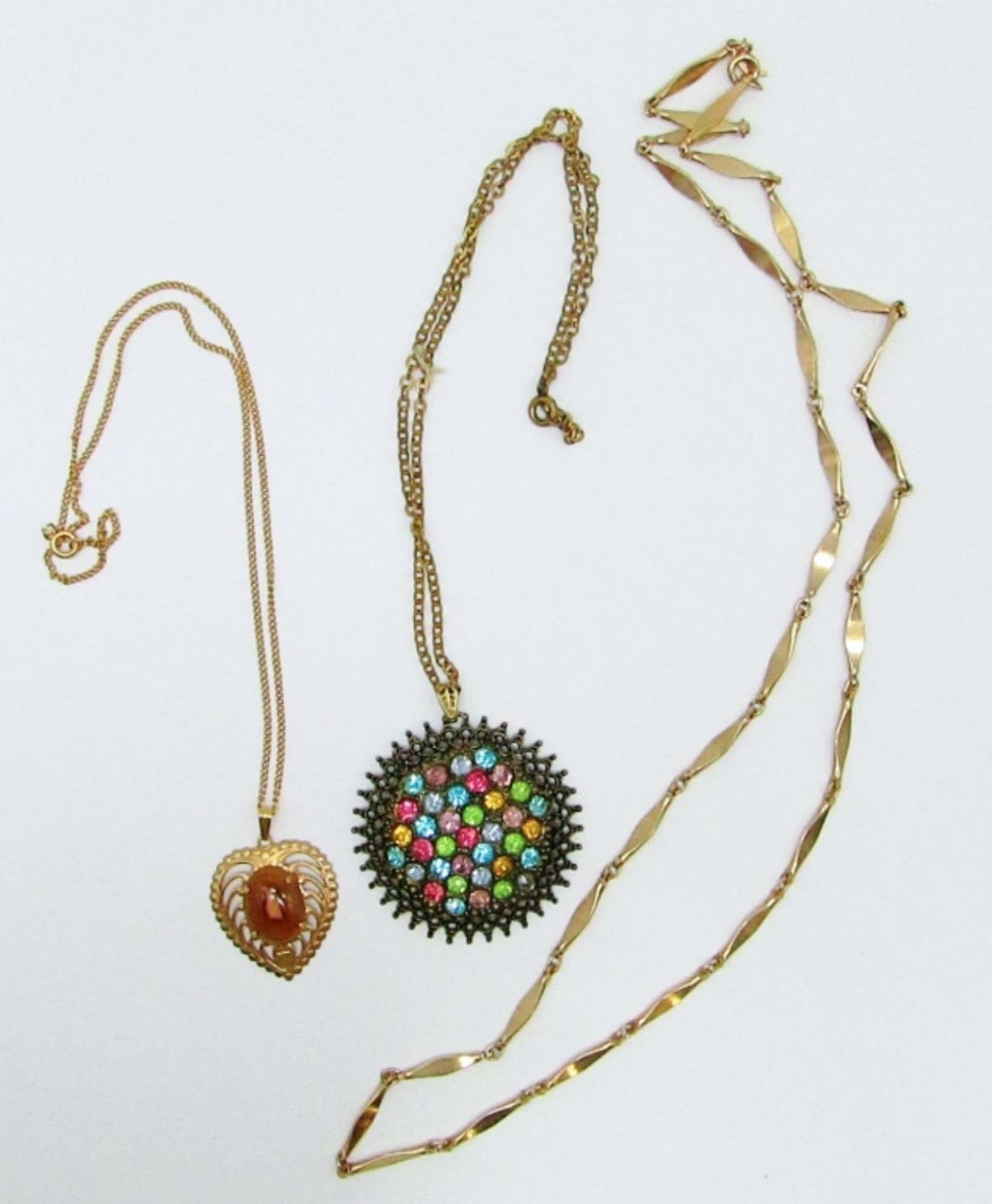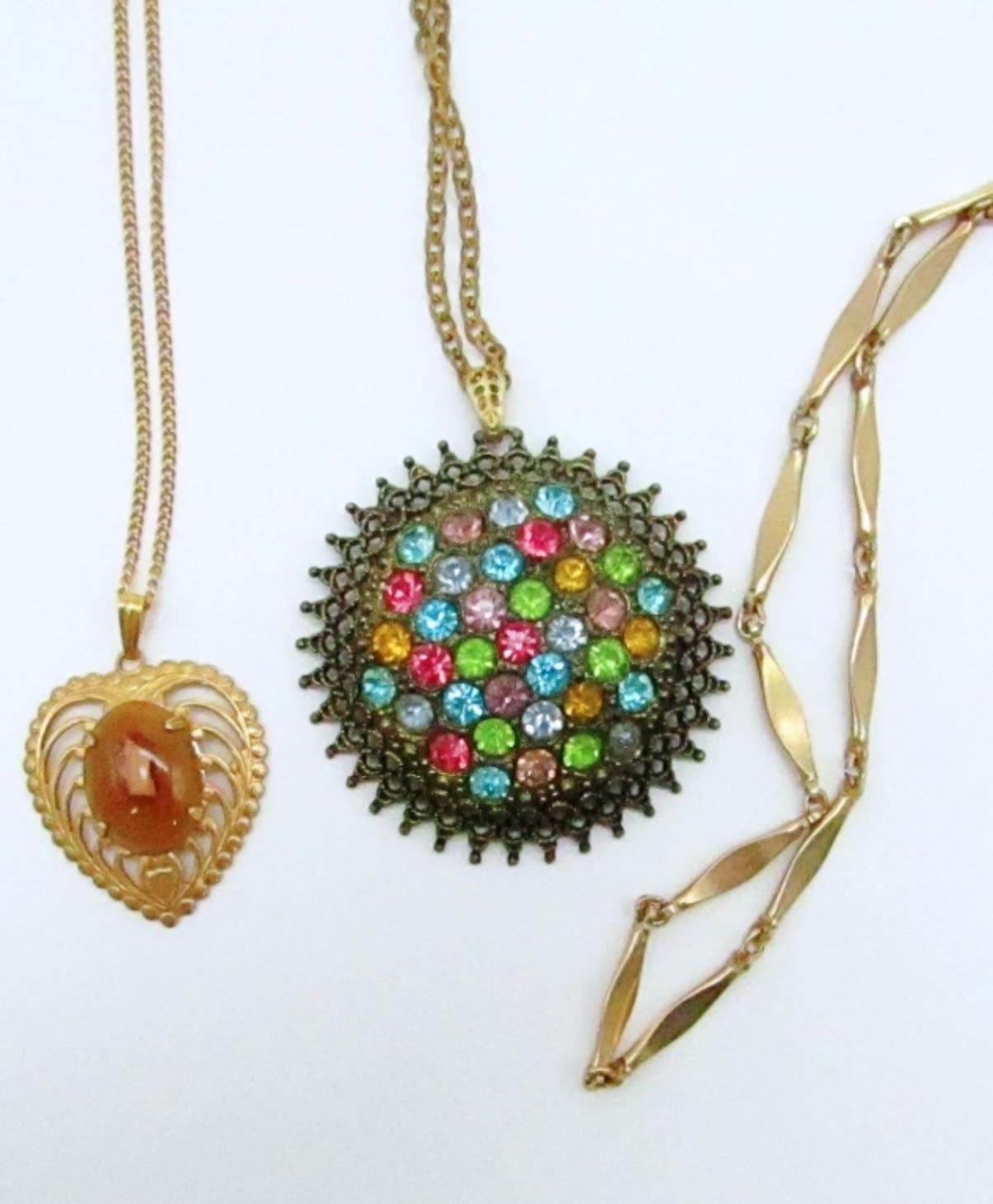 LARGE RHINESTONE PENDANT w/CHAIN, HEART PENDANT w/NATURAL STONE