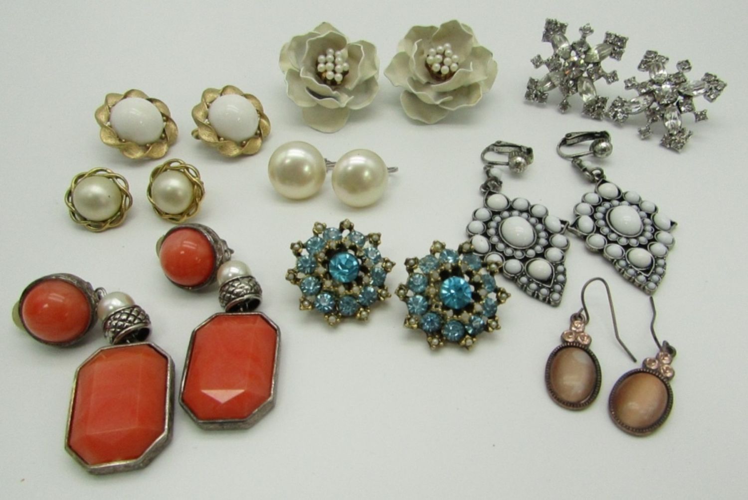 ONE PAIR ARE CLIP ONS. 2 PAIR TRIFARI AND 1 MARVELLA