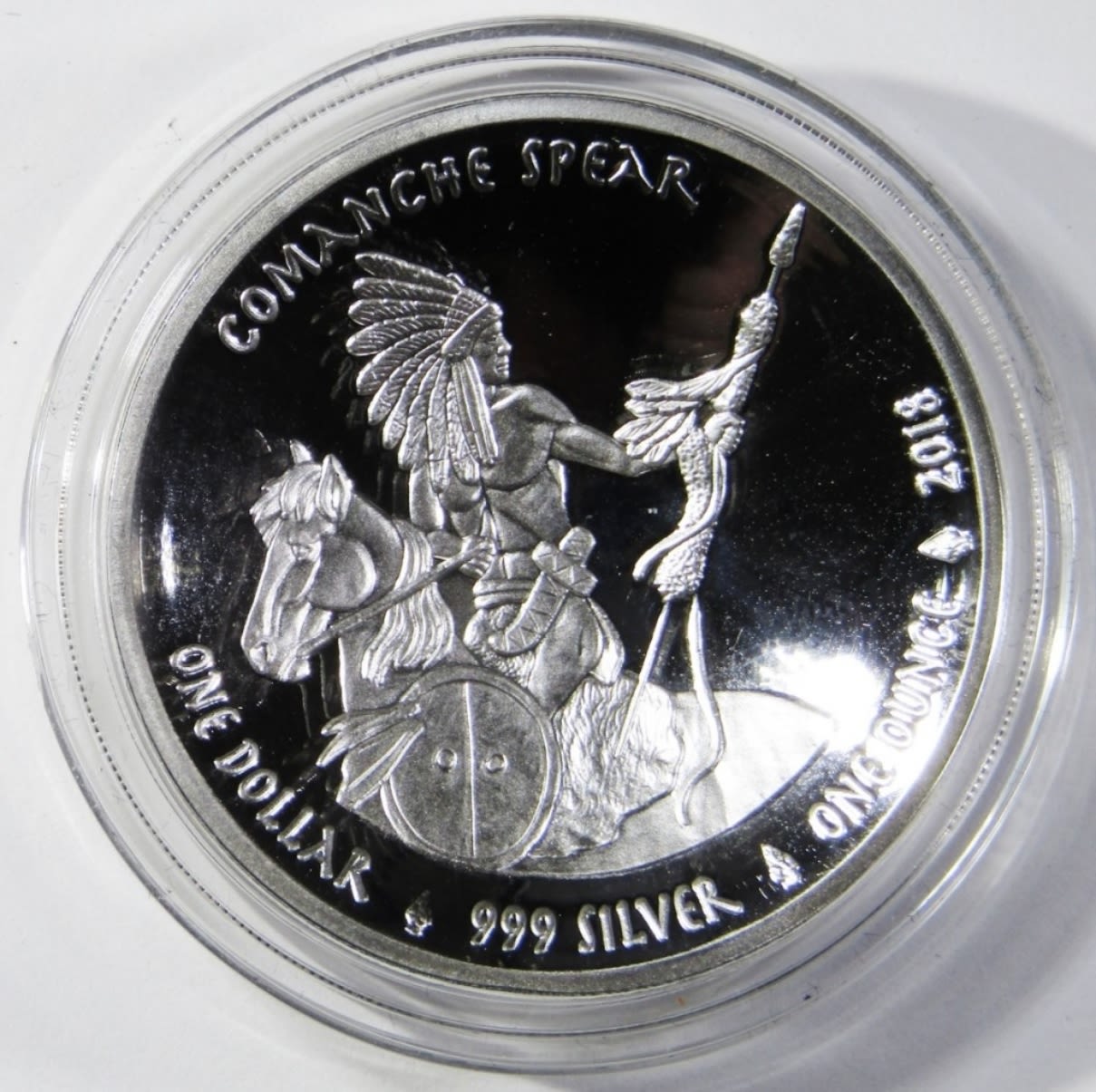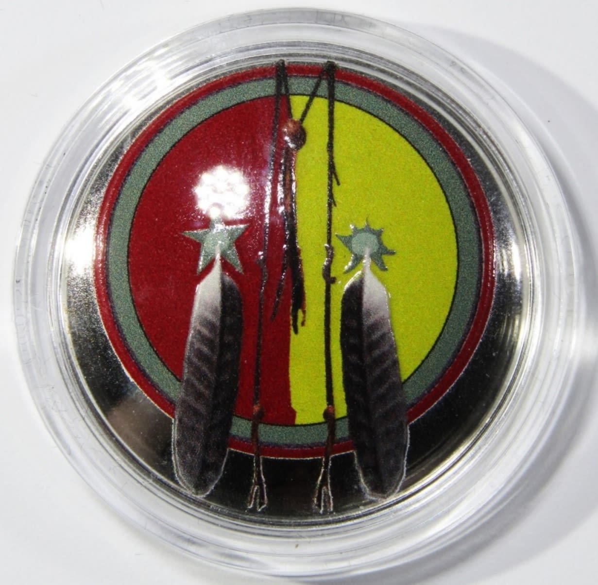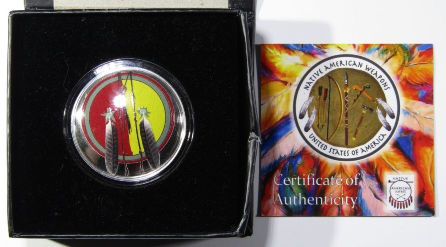 NATIVE AMERICAN WEAPONS- COMANCHE SPEAR. COLORIZED $1 THE JAMUL SOVERIGN NATION. IN OGP W/ COA. DAMAGED BOX.
