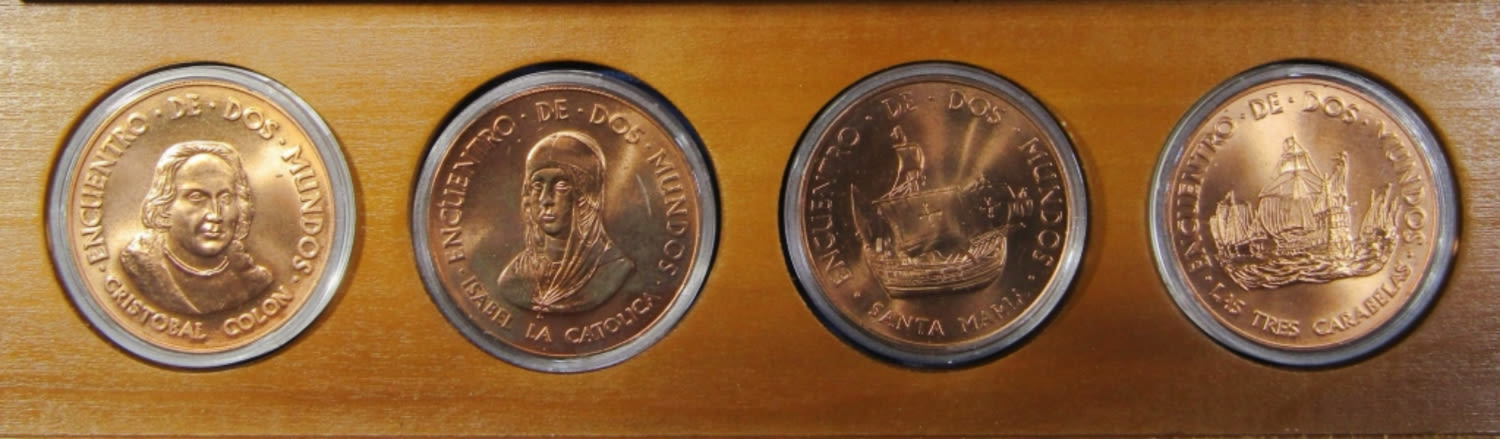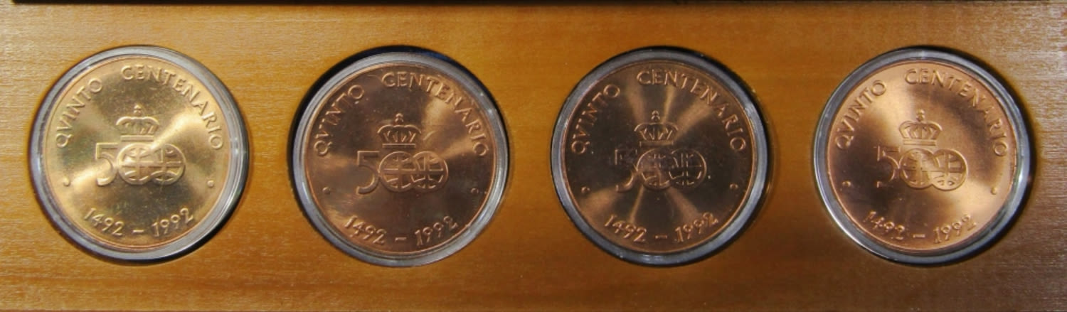 (4) MEDALLIONS COMMEMORATING THE QUINCENTENNIAL OF THE DISCOVERY OF AMERICA. MADRID, SPAIN. IN OGP W/ COA