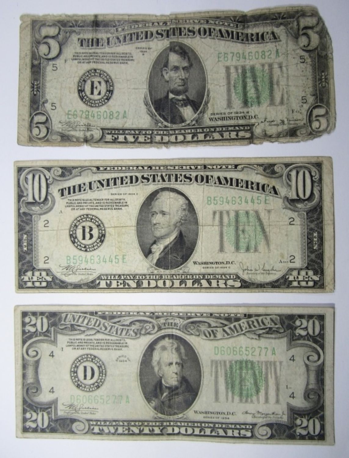 $5 RICHMOND, VIRGINIA, $10 NEW YORK, NEW YORK, $20 CLEVELAND, OHIO.