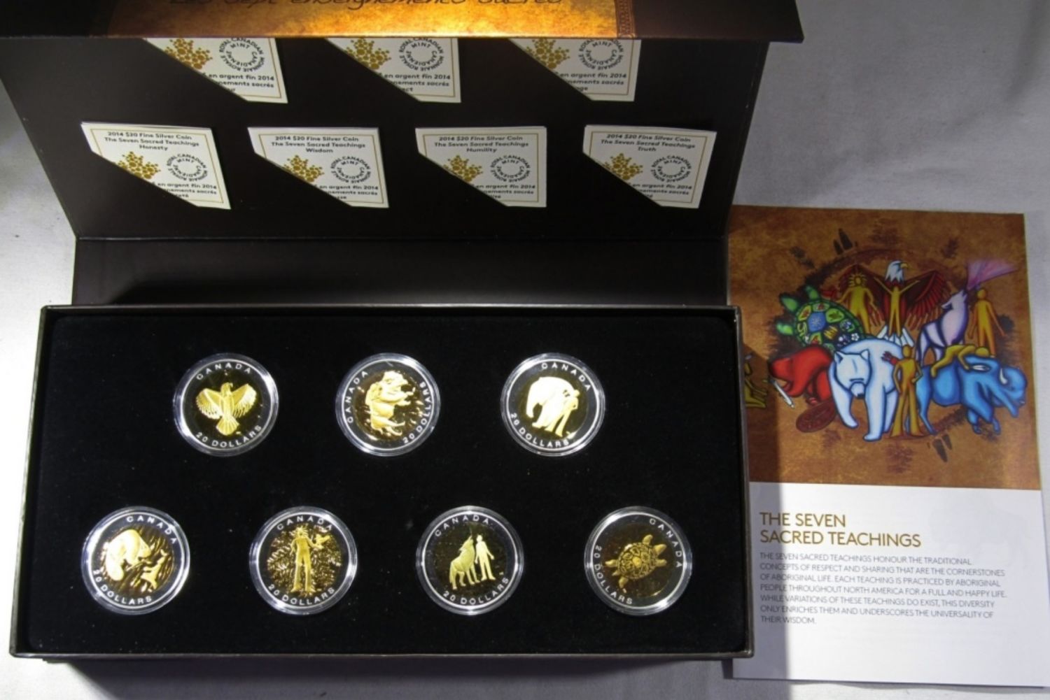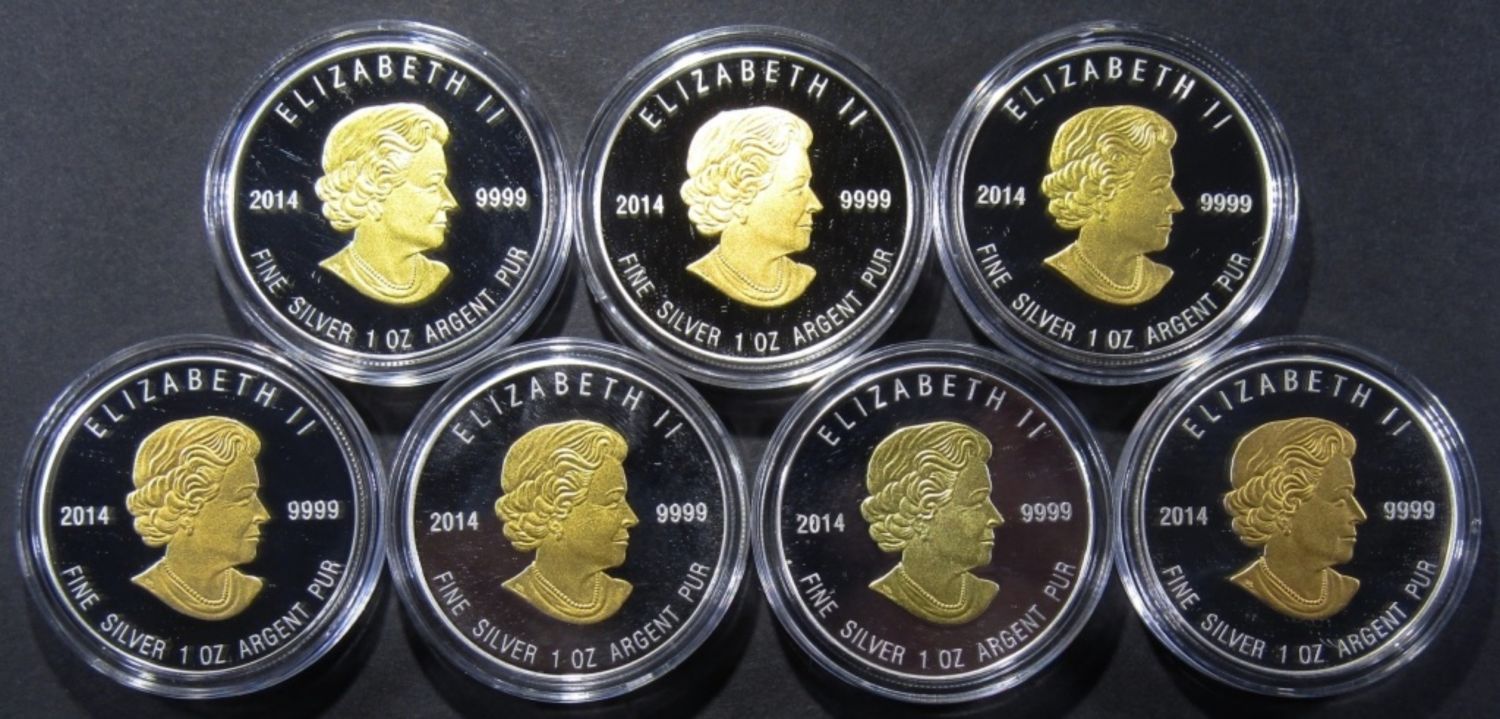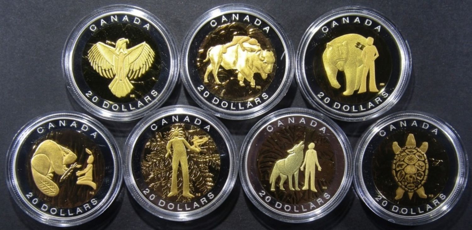 (7) $20 GOLD PLATED 1oz .999 SILVER COINS IN OGP WITH COAs (7oz .999 SILVER TOTAL)