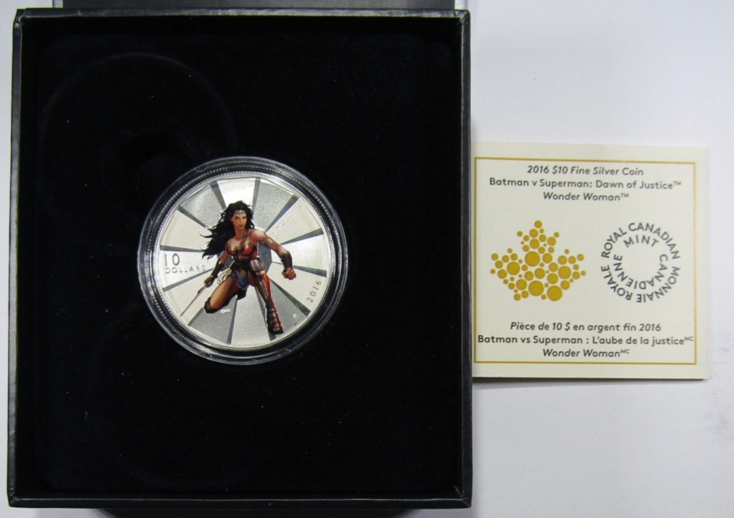 BATMAN vs SUPERMAN: DAWN OF JUSTICE COLORIZED 15.87 GRAMS .999 SILVER COIN IN OGP WITH COA.
