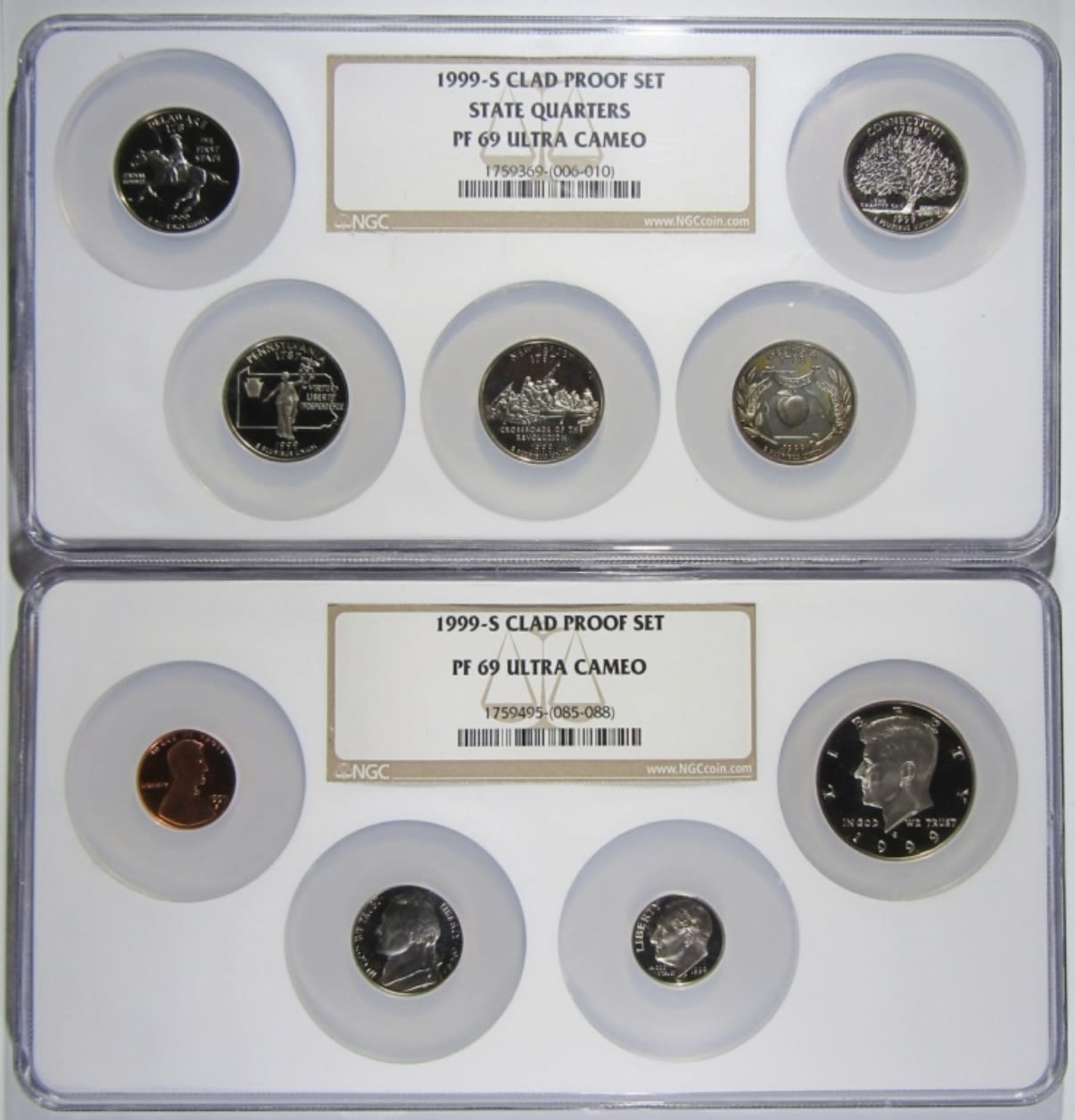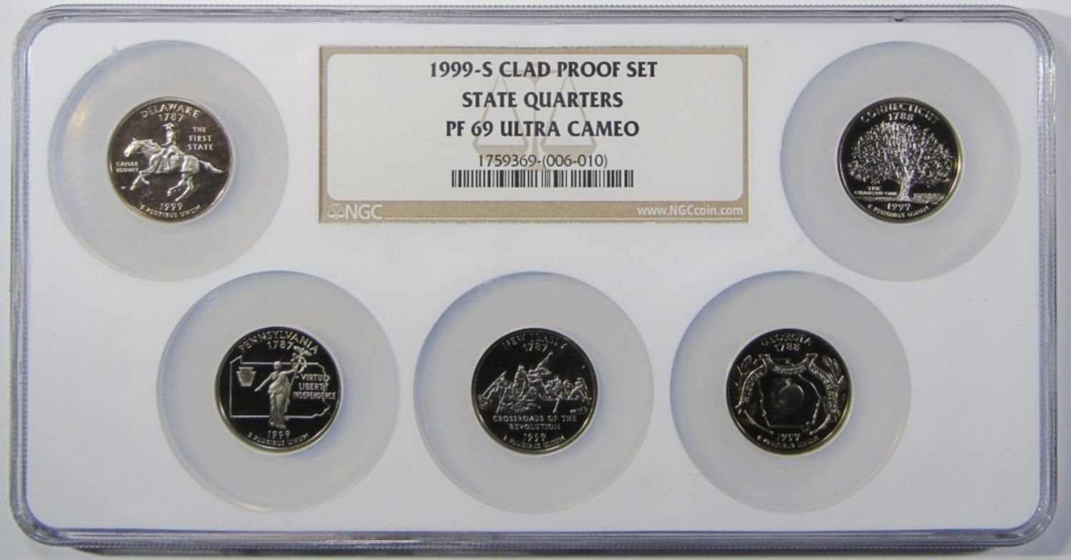 2 SLABS, 9-COIN SET. W/ STATE QUARTERS.