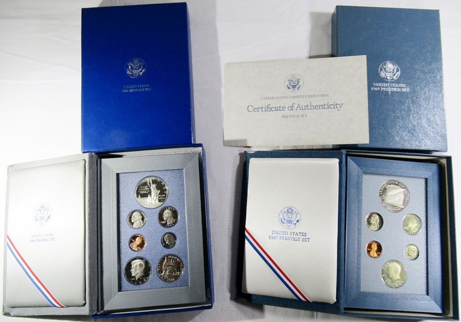 1986 AND 1987 PROOF SETS 87 HAS COA 86 HAS NO COA